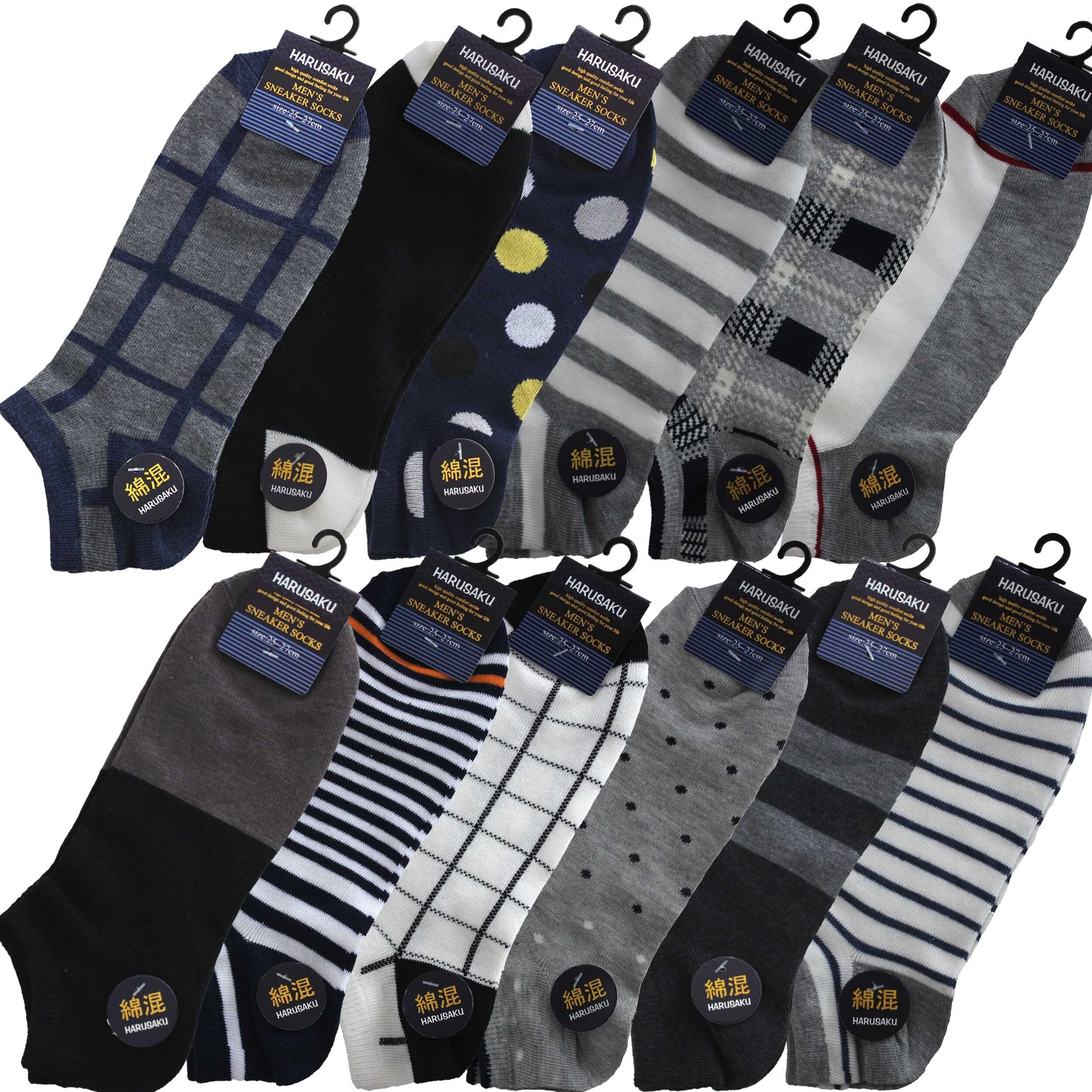 [HARUSAKU] スニーカーソックス メンズ レディース 靴下 くるぶし丈 ソックス 12足 セット