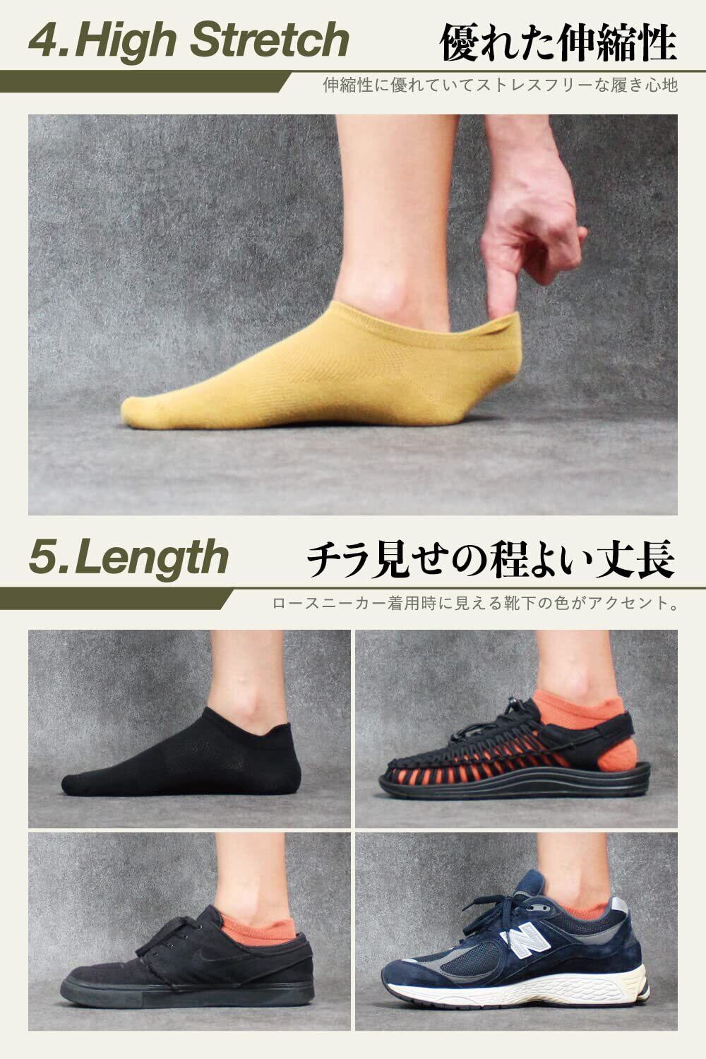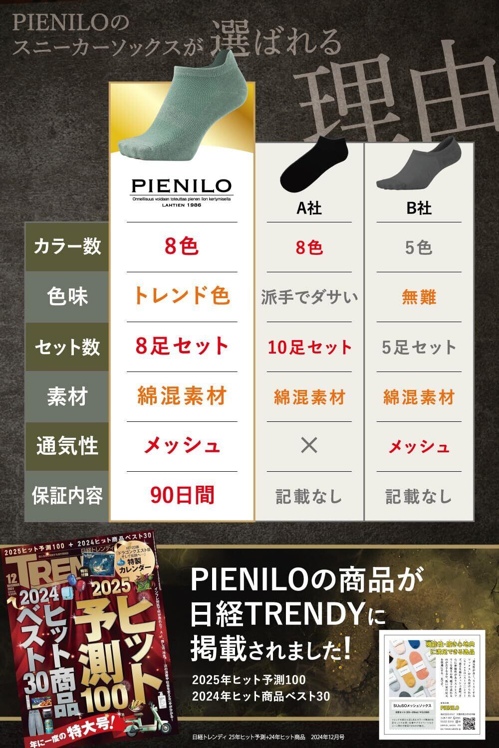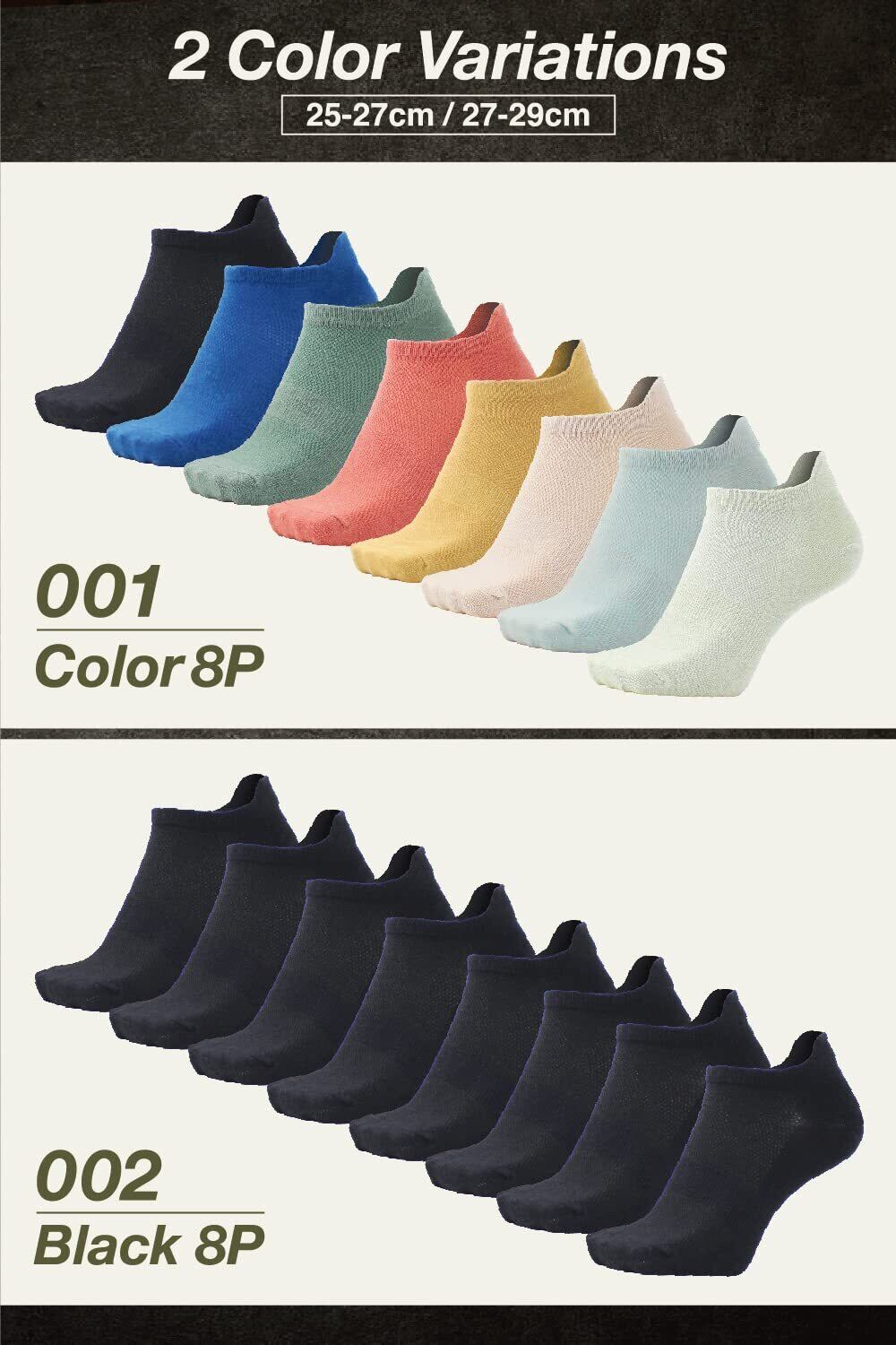 [PIENILO] 雑誌[日経トレンディ掲載] 靴下 メンズ くるぶし 夏 スニーカーソックス くるぶし靴下 黒 薄い 大きいサイズ 夏用 メッシュ カラフル 脱げない 25-27cm 27-29cm 8足セット