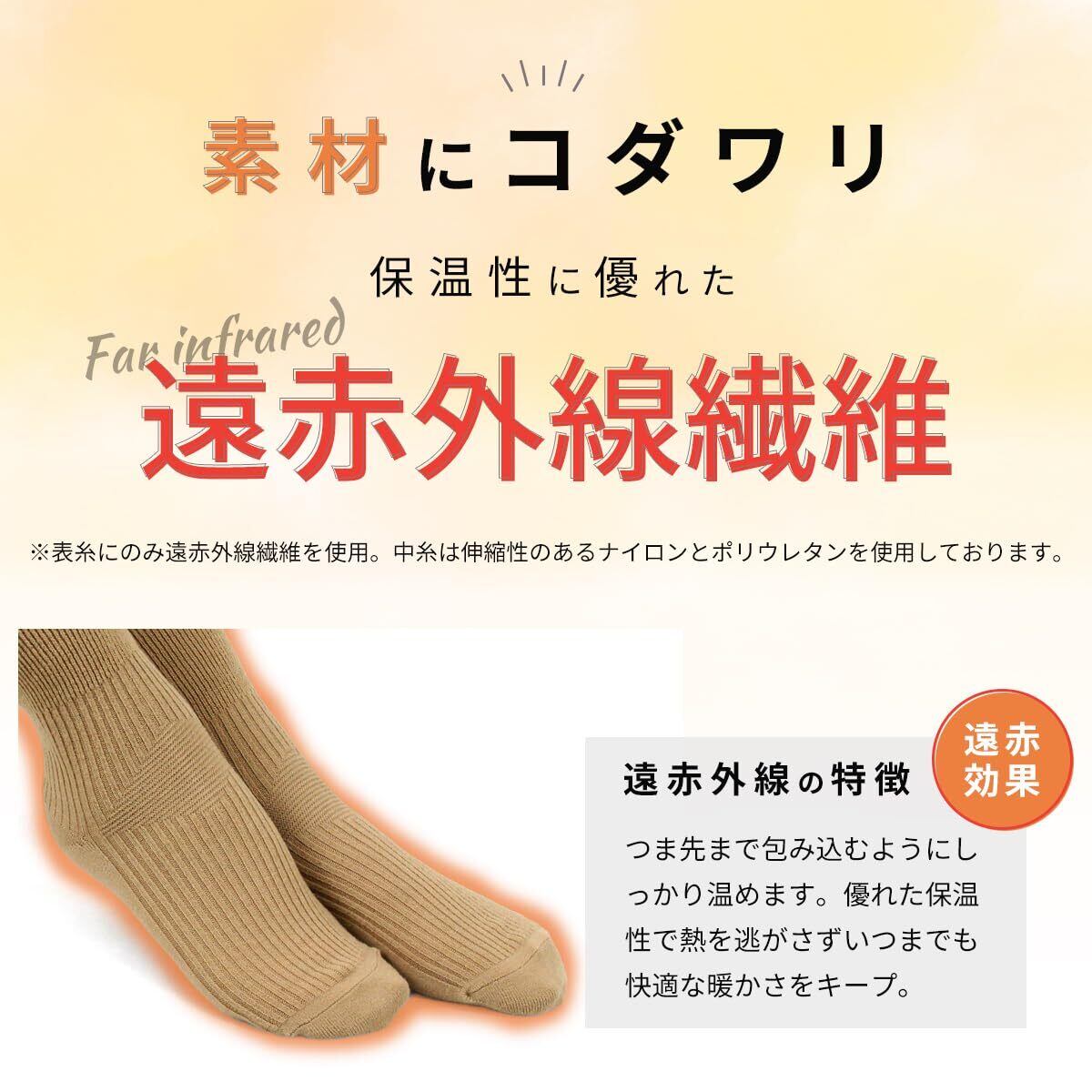 超ホカホカの毛&つま先、かかとに遠赤外線素材セラフィを使用!心地良い滑らかな肌触り。毛を使用しているので保温性抜群!生地にセラミックスを練りこんだ特殊繊維セルフィ。柔らかくふっくらした肌触りで、遠赤外線発生率が高いので体の芯まで暖めてくれます。また超微粒子セラミックス使用のため、洗濯時で性能が低下することはほとんどありません。
