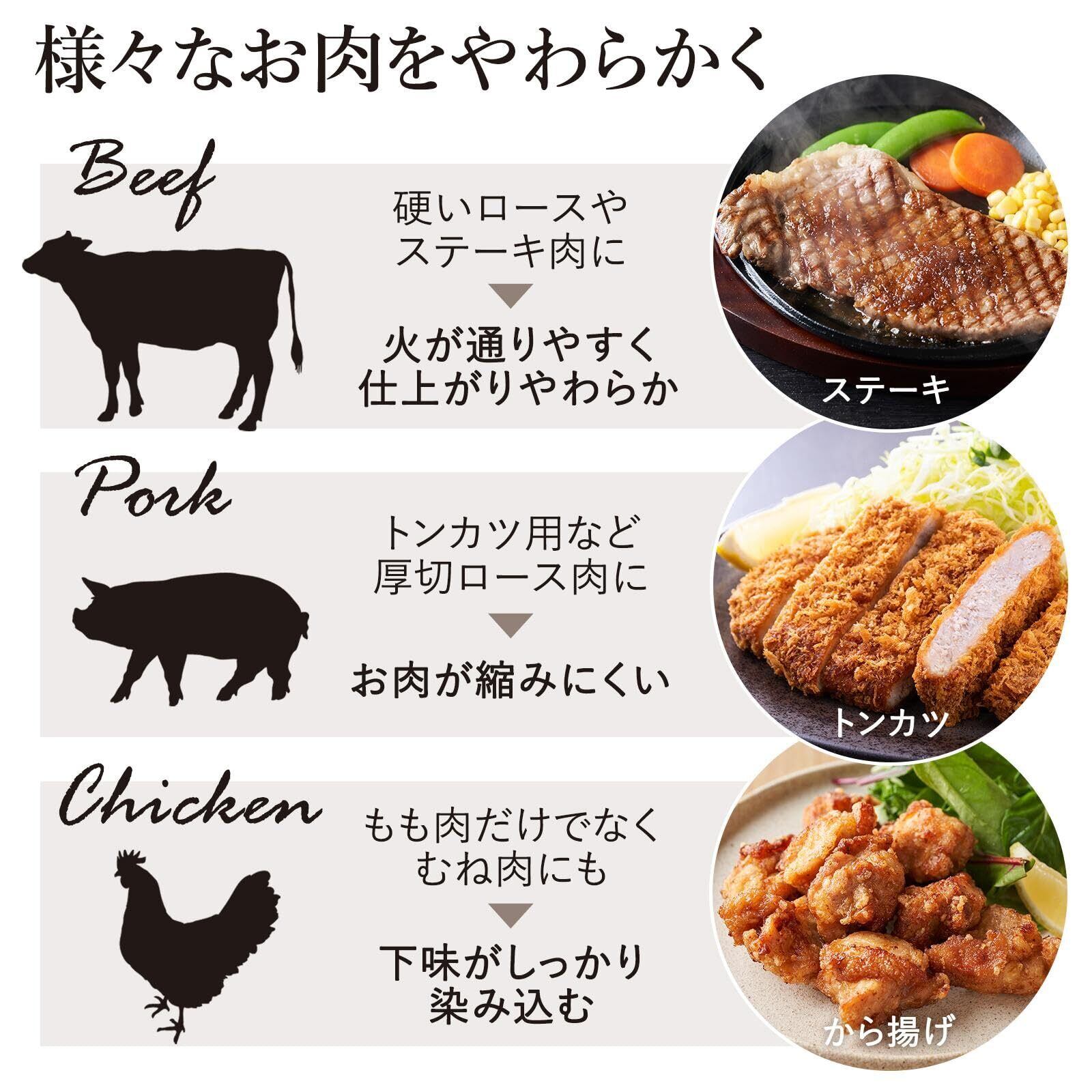 上からザクザク押すだけ、力いらずで簡単に硬いお肉の筋や繊維をカットしてやわらかくします。