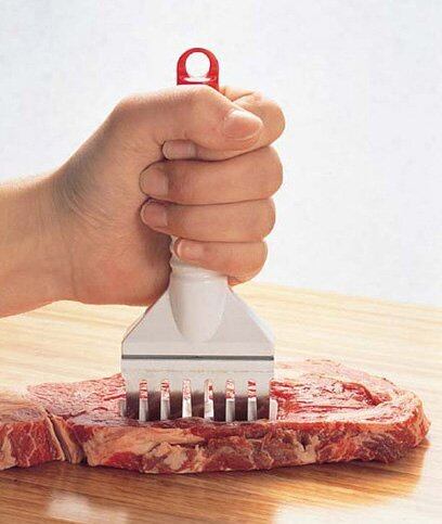 ●お肉に軽く押し付けると、7本の刃が飛びたして肉のセンイをカット!