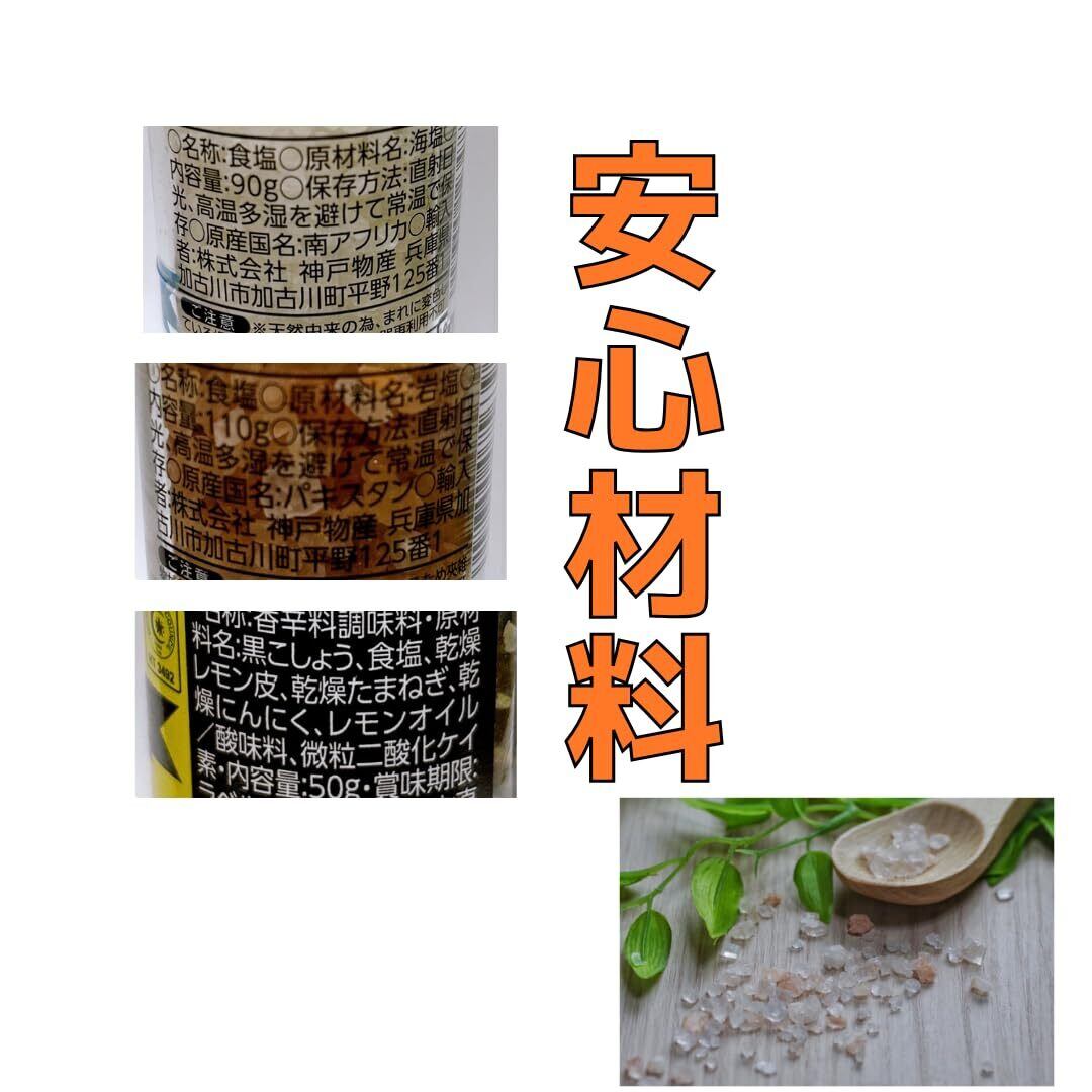レモンピール&ブラックペッパー/黒胡椒、食塩、乾燥レモン皮、乾燥タマネギ、乾燥ニンニク、レモンオイル