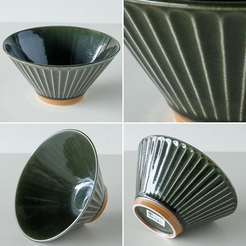 伝統の装飾技法「削ぎ」を用いた陰影あるストライプが印象的な 「Iki(イキ)」シリーズ。 どこか懐かしい佇まいを活かしつつ、 今の暮らしに映えるようアップデートしたデザインです。 うつわ下部分の素焼き肌もデザインのアクセントになっています。
