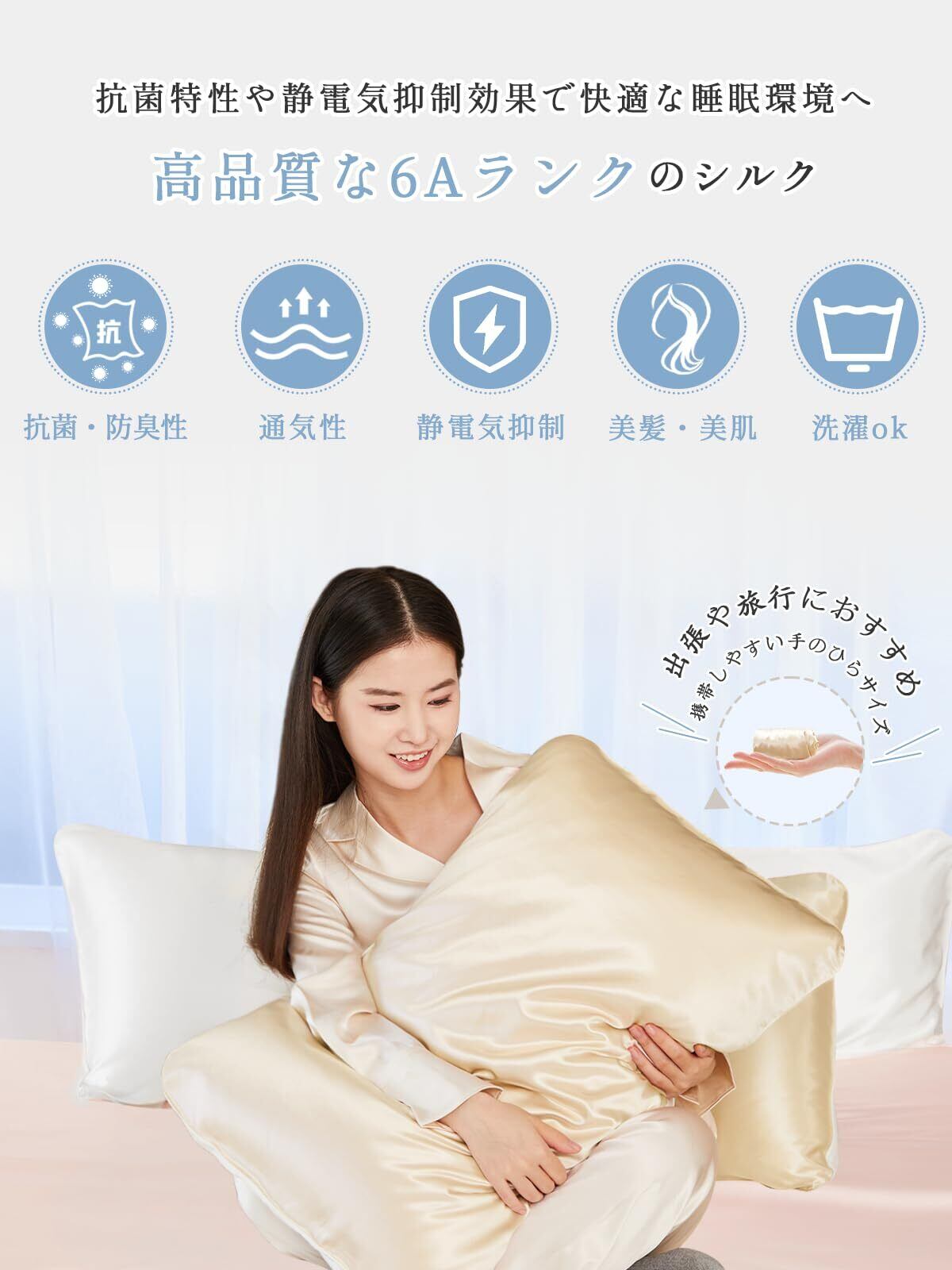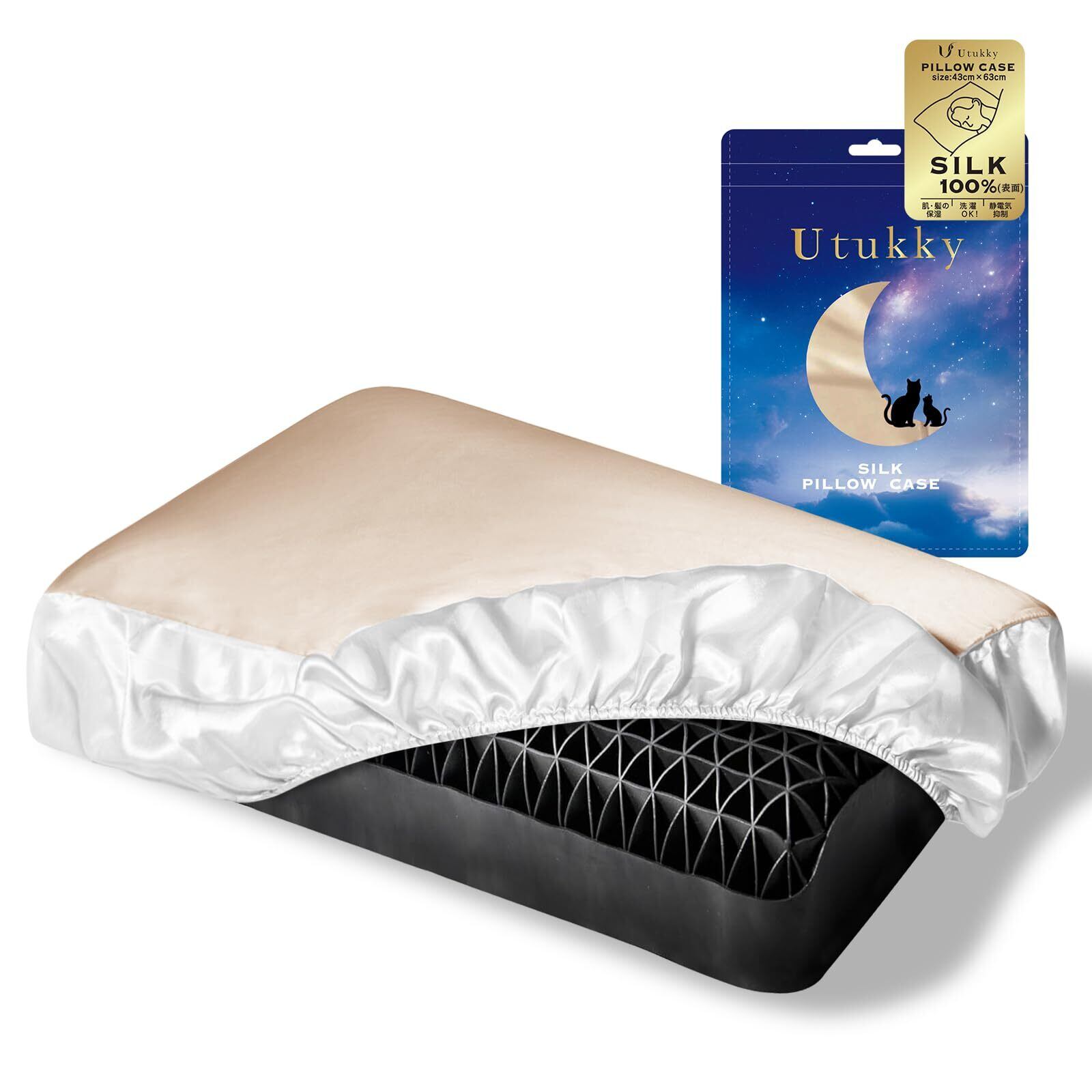 Utukky シルク 枕カバー 伸縮性【TVで紹介】片面100%シルク 枕カバー 洗える 43×63cm 寝癖軽減 抗菌防臭 美髪 美肌 敏感肌に優しいピローケース 四季適応 新年ギフト クリスマス 贈り物 誕生日 プレゼント 1枚入れ (シャンパン)