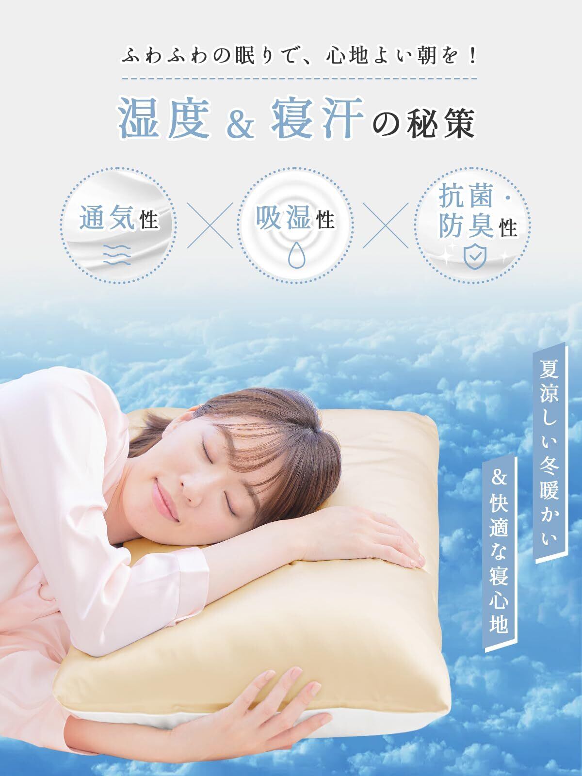 【通気性+吸湿性+抗菌・防臭】シルクは優れた優れた通気性、吸湿性と放湿性を持ち、肌の汗を素早く吸収、温度調節を助けます。 夏は涼しく、冬は温かく、四季を通して快適な睡眠環境を提供します。