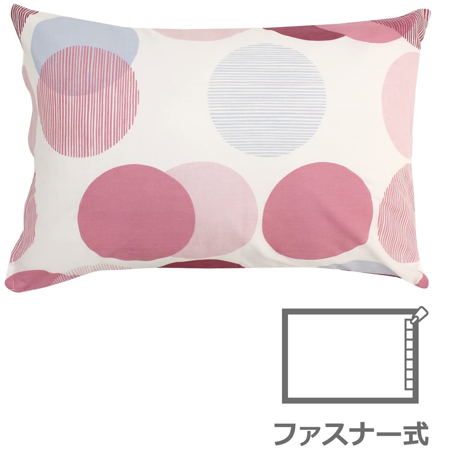 メリーナイト(Merry Night) 枕カバー 「ドット」 ピンク 約43×63cm ファスナー式 まくらが入れやすい 綿100% 心地よい肌触り オールシーズン 洗える FF16118-16