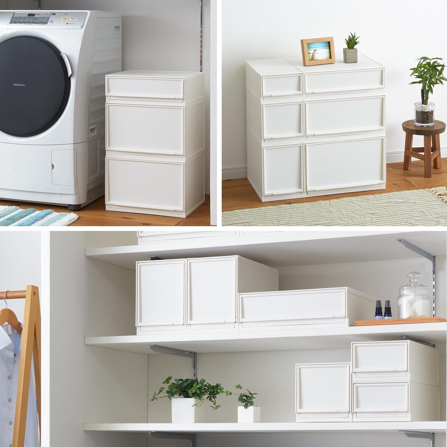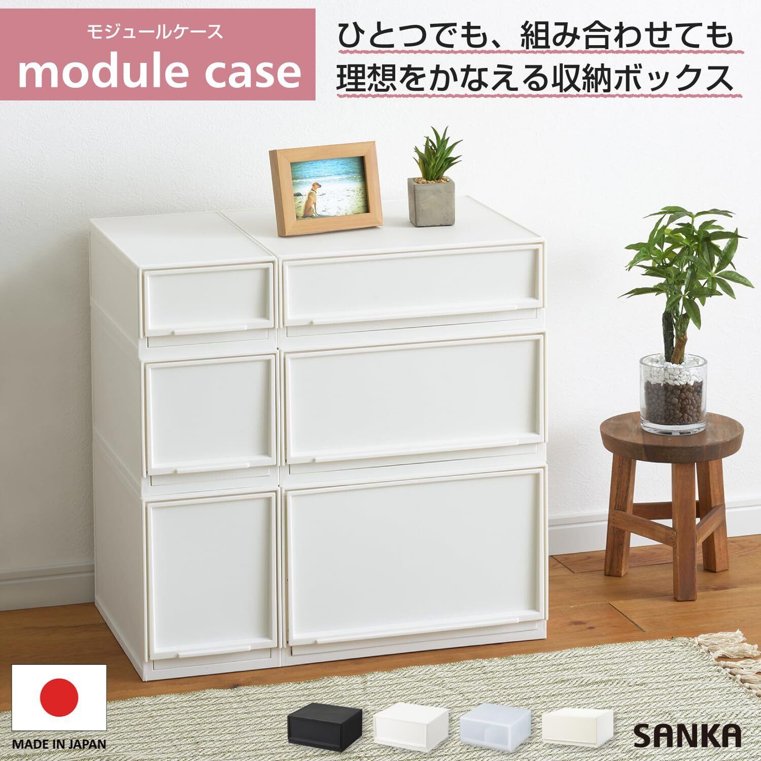 サンカ モジュールケース 組み合わせ自由自在 引き出し収納ケース ワイドM ホワイト ライフスタイルに合わせて組み合わせができる引き出し収納 スルっと引き出せて スキッと閉まる引き出し ズレを防ぐラバーストッパー ロック機構で重ねても安定 日本製 収納ボックス 衣装ケース 小物収納 白 (37.6×35.5×18.8cm) D2SC-MWWH