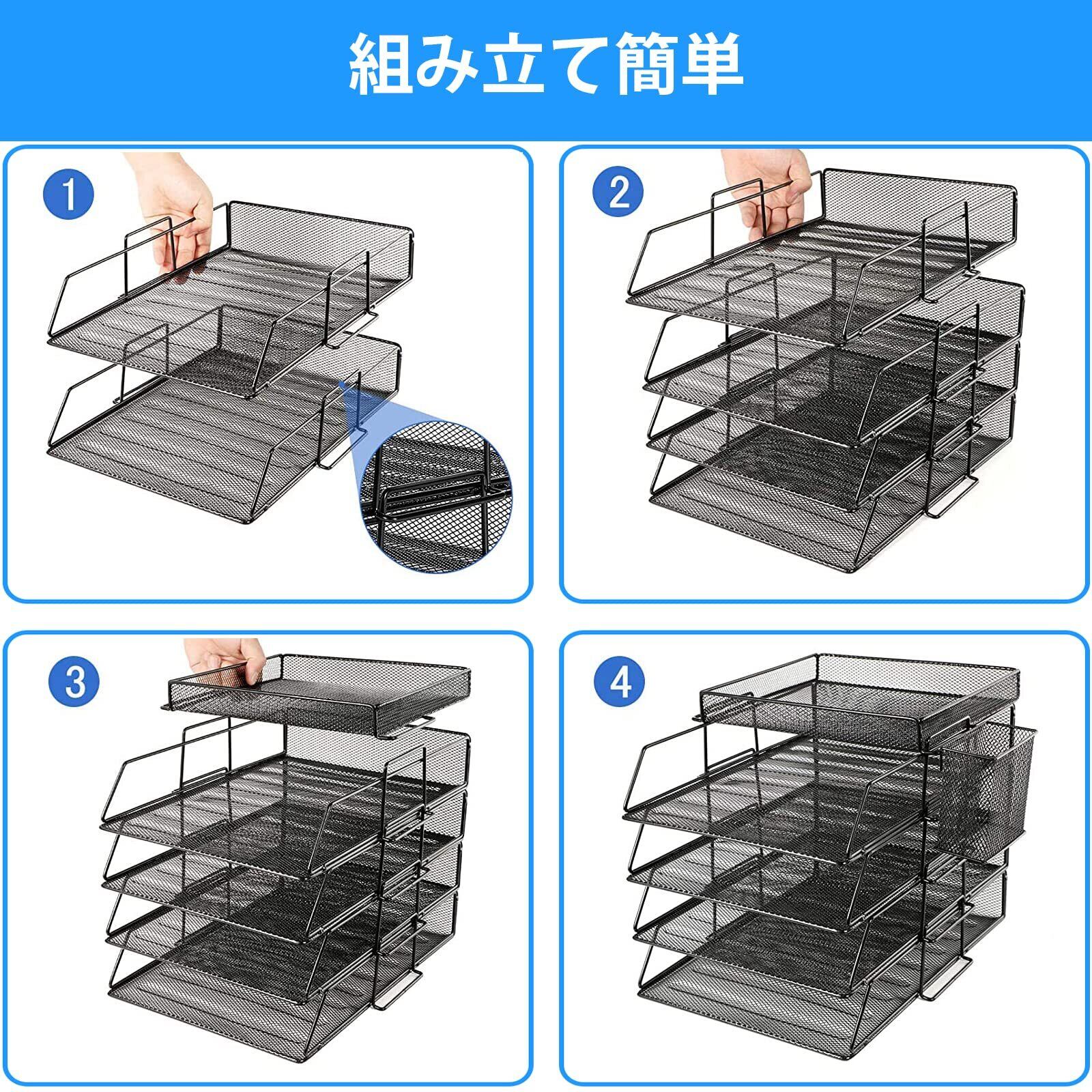 【組み立てと分解簡単】: ゴチャゴチャしないシンプルなデザインで、工具不要、ただ乗せていくだけで設置が簡単。複数を 組み合わせることで、立派な収納ラックに。必要に応じて段数を変更することもでき、軽くて移動 がラクラクです。構造は十分に安定しており、樹脂製より書類の重さに耐えられ、揺れず変形しに くいです。