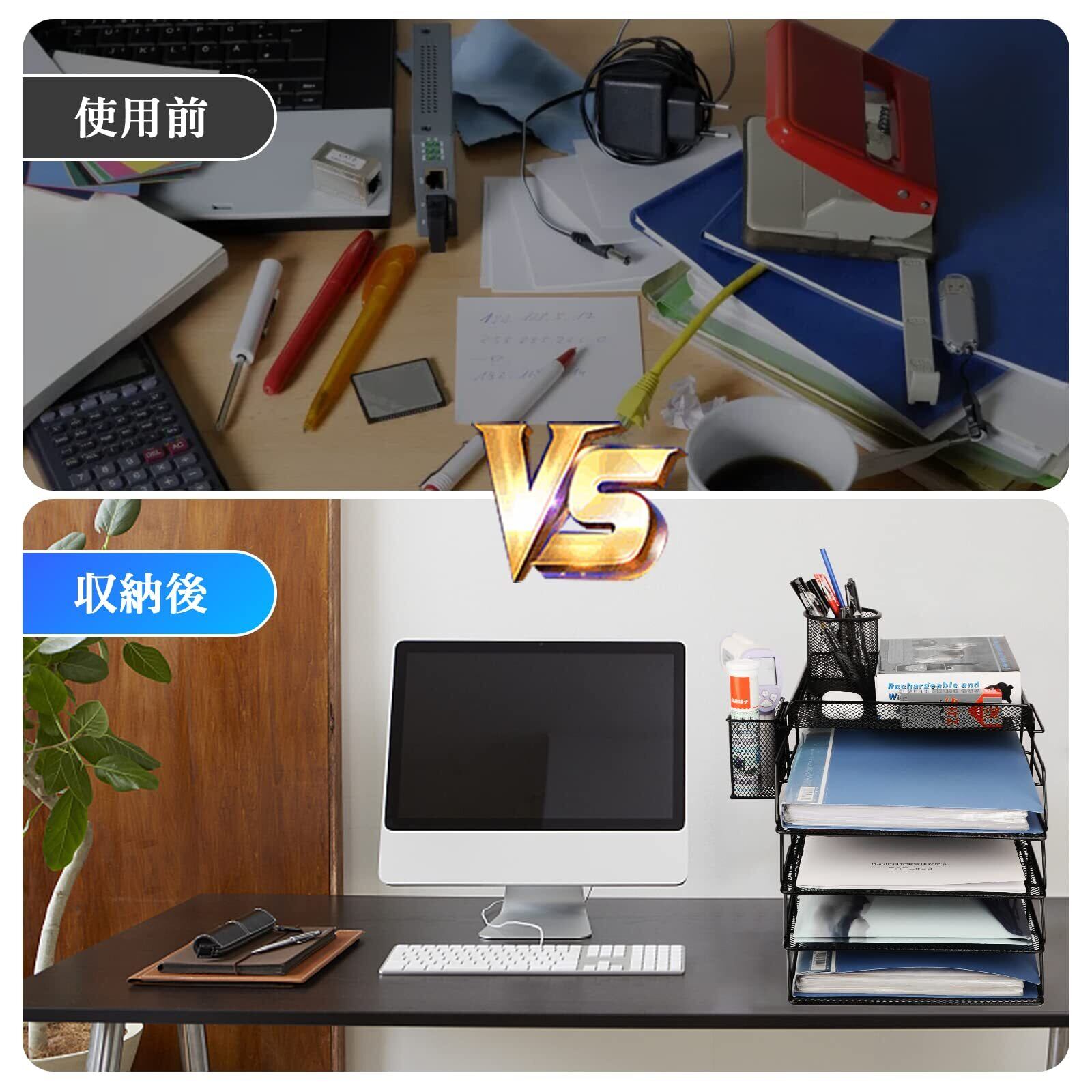 【多機能なファイルラック】: 書類整理 に デスク上にも置ける ラック は 仕事上の 書類整理、文房具などを収納できます。仕 事で必要なものをまとめて収納や散らかりがちなデスク周りの整理整頓に最適な書類トレーです! 机の上がすっきり片付くと仕事や勉強仕事の効率があがると繋がります。