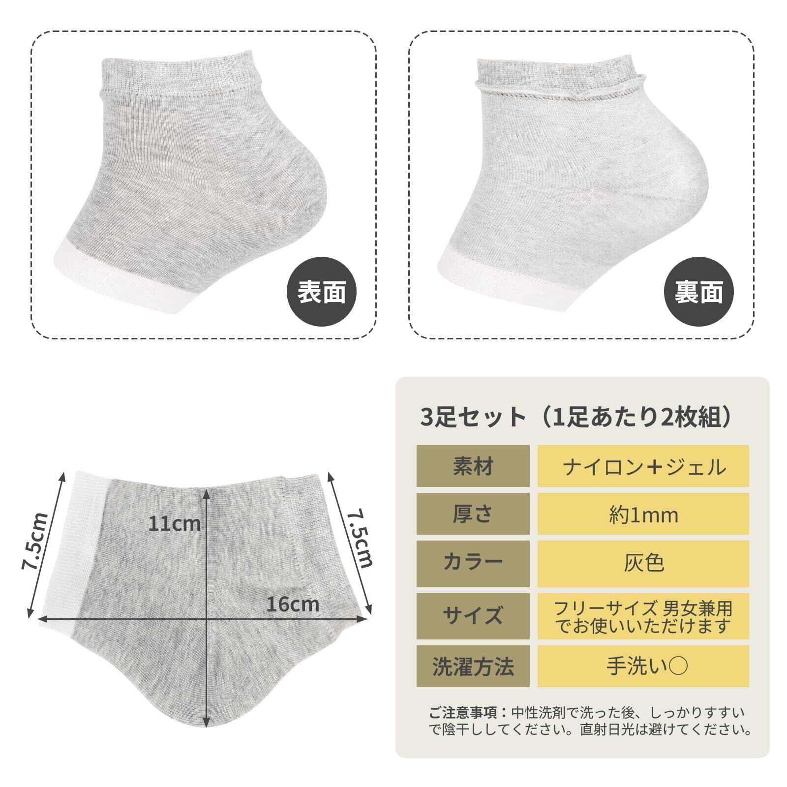【セット内容】かかと保湿ソックス3足セット、1足2枚あたり。カラー:灰色*3足。サイズ:男女兼用のフリーサイズ。