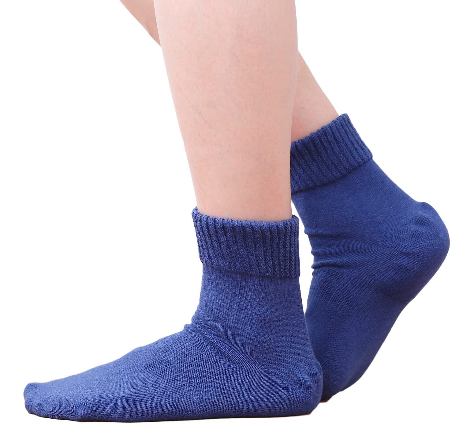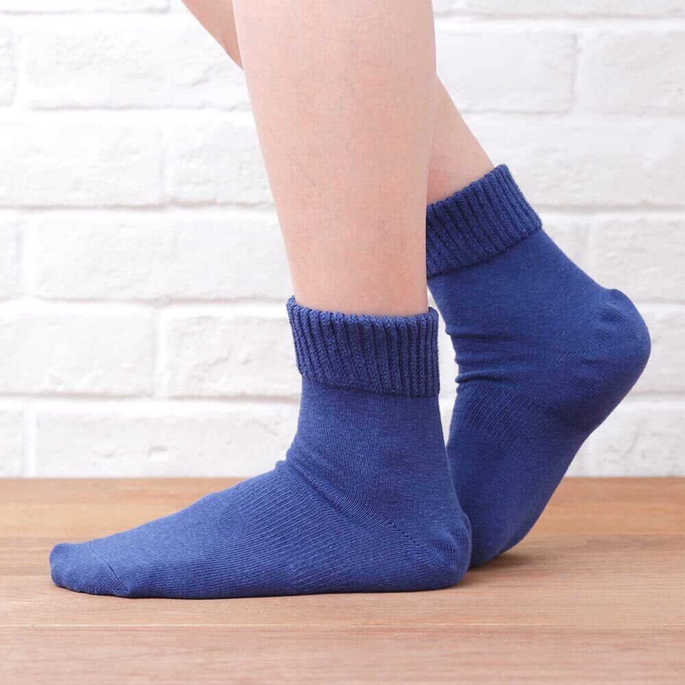 [歩くぬか袋] かかとケア 靴下 締め付けない 無地 米ぬか繊維 ソックス 保湿 レディース (ブルー, 23-25)