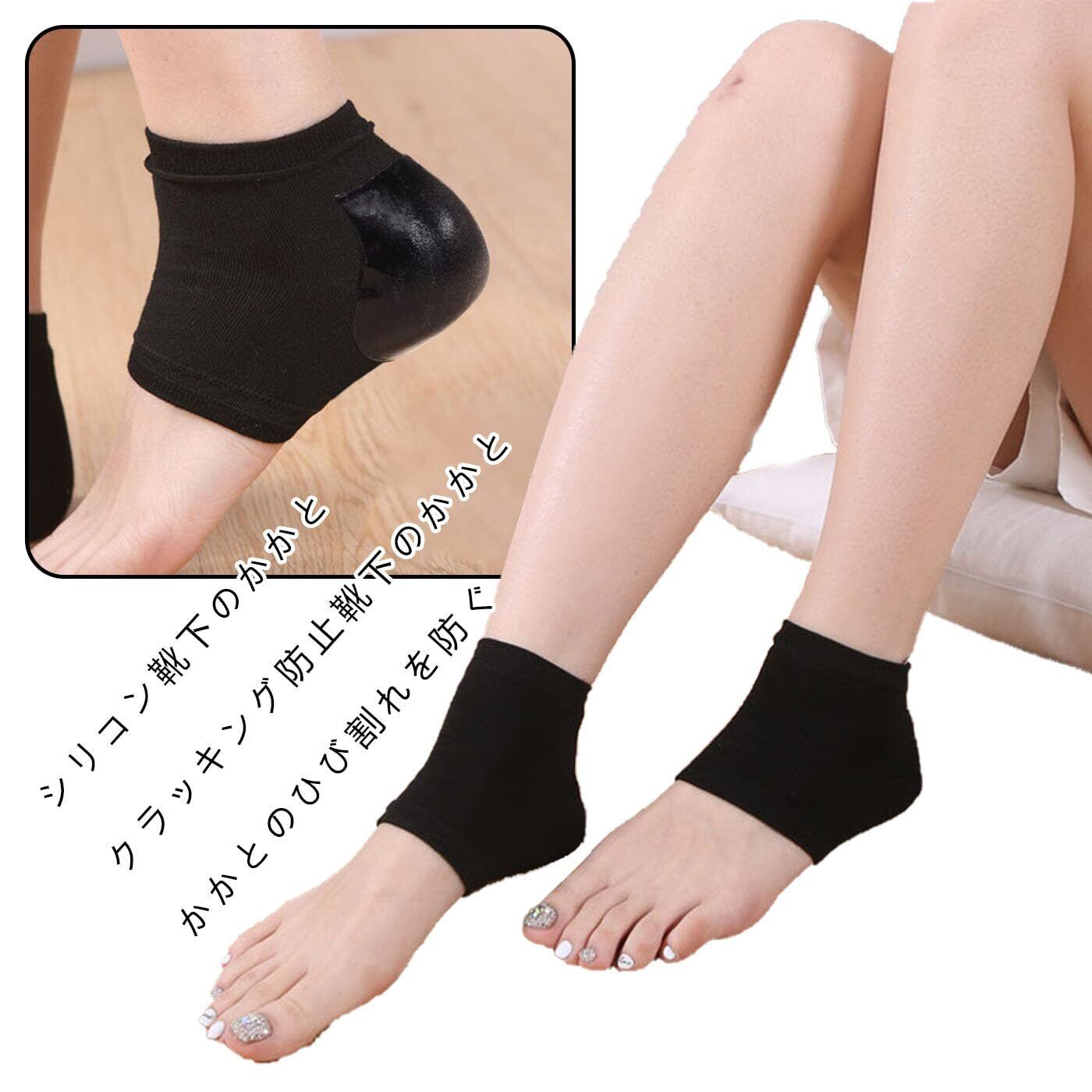 この靴下を履いて、指定された時間を過ごすことで、かかとの乾燥を防止し、ひび割れを防ぐことができます。使用後は洗い流して再度使用できます。