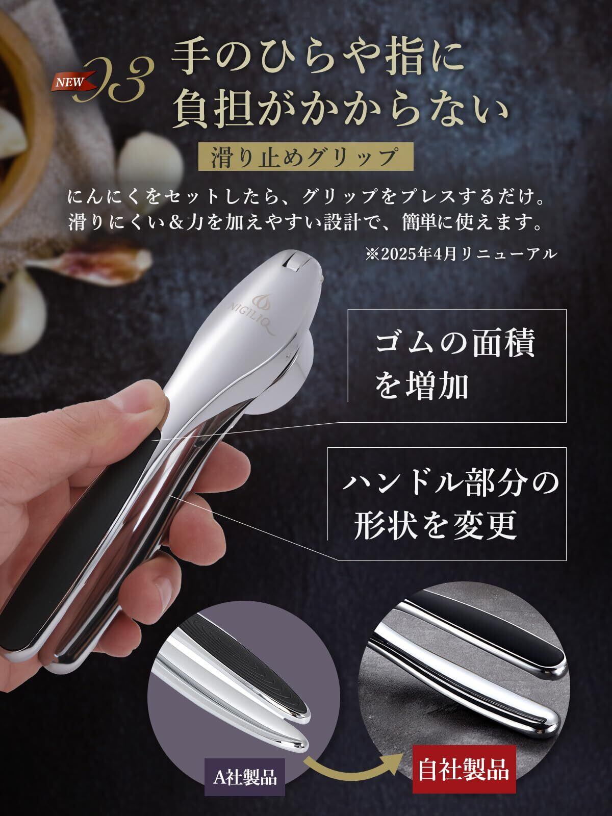[NIGILIQ] ガーリックプレス 【プロ料理人監修】 取扱説明書付き 衛生検査済み 生姜対応 にんにくつぶし器 ニンニク潰し器 にんにくおろし器