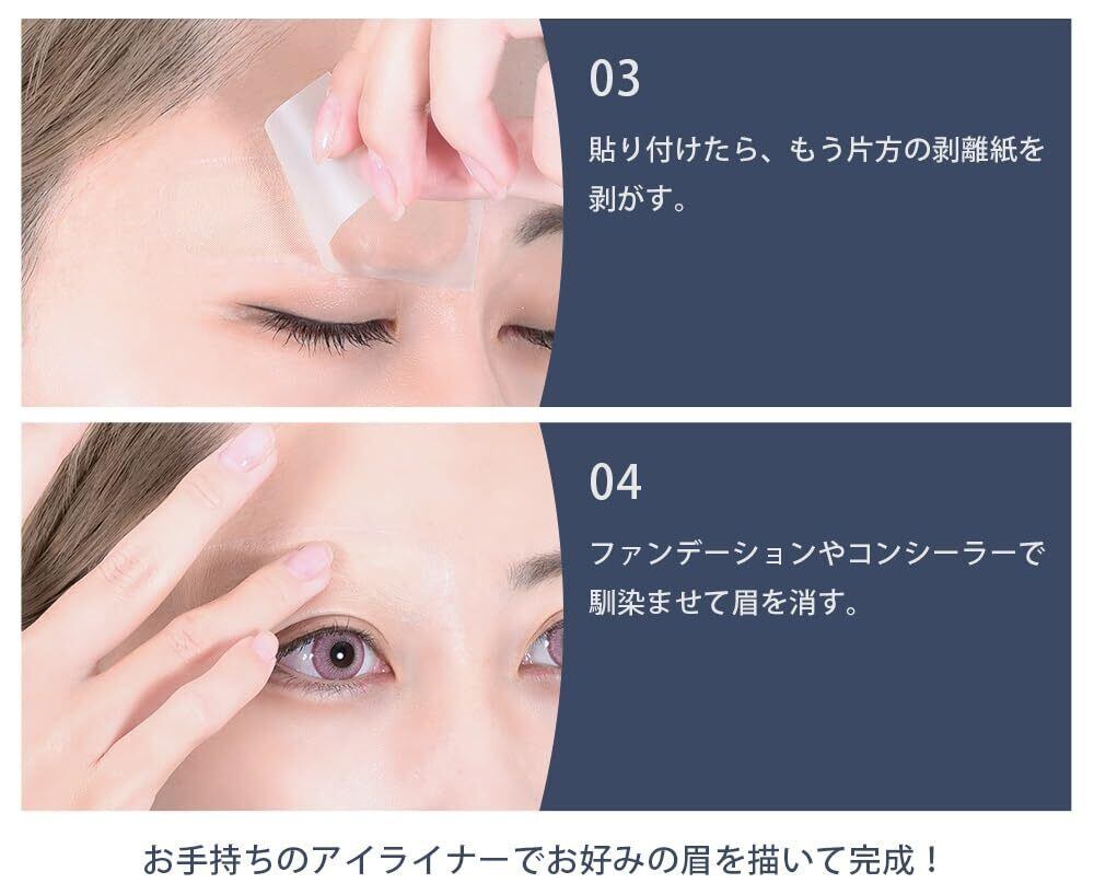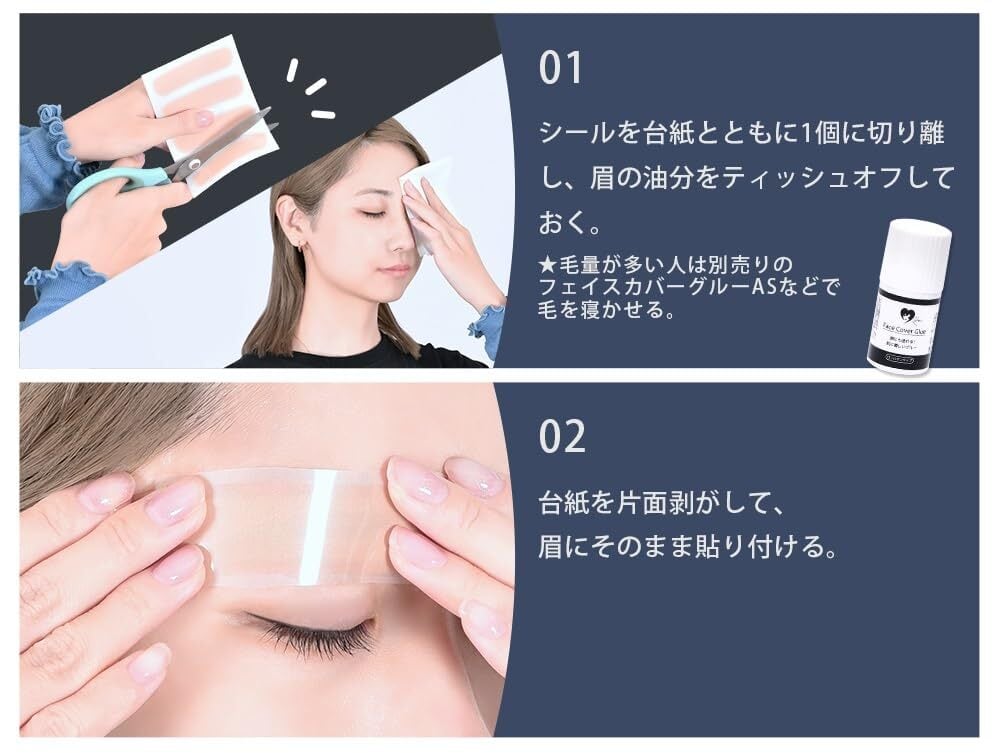 上からメイクをすることで自眉をしっかりと隠せるシールです。