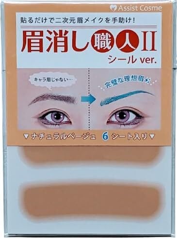 眉消し職人Ⅱ シールVer. テカリが少ない 眉メイク コスプレ イベント キャラコス 当店オリジナルチャック袋付き (ナチュラルベージュ, 6シート(24枚)入り)