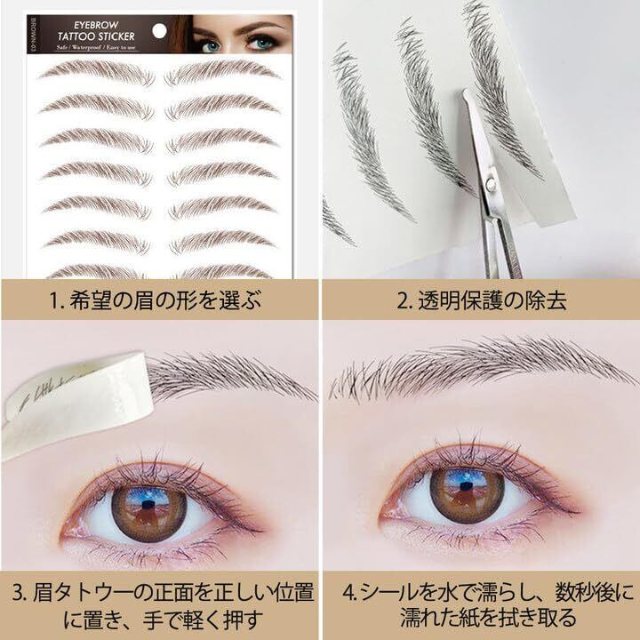 2この眉シールは、シールを適切な大きさにカットし、保護フィルムをはがして眉に軽く押すだけで簡単に使用できます。約10秒後に紙をはがすと、眉毛がより美しくなります。