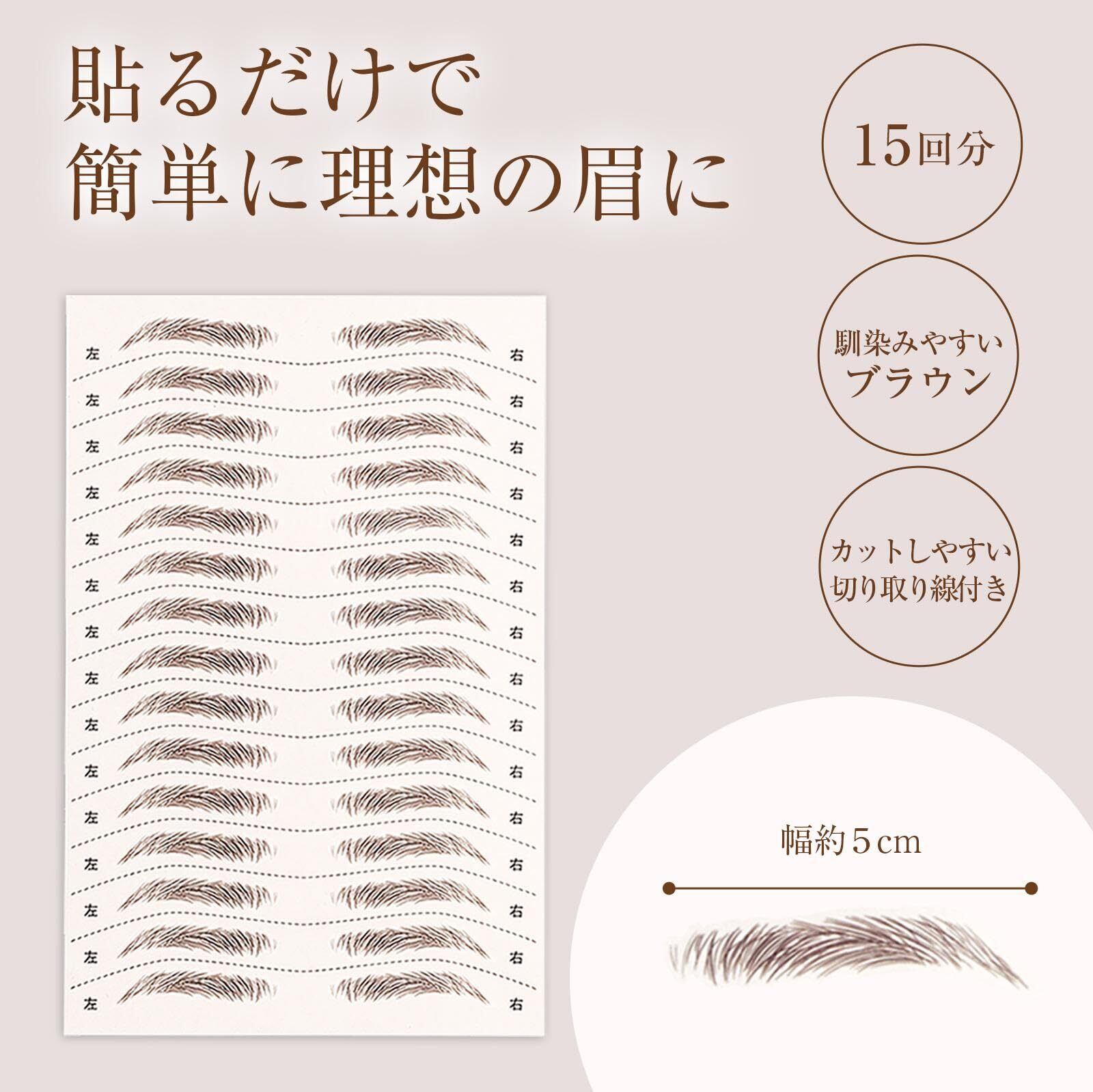 コモライフ 貼るだけ 美眉シール ブラウン 15回分 眉毛 シール 眉 アイブロウ 切り取り線付 水濡れOK 日本製