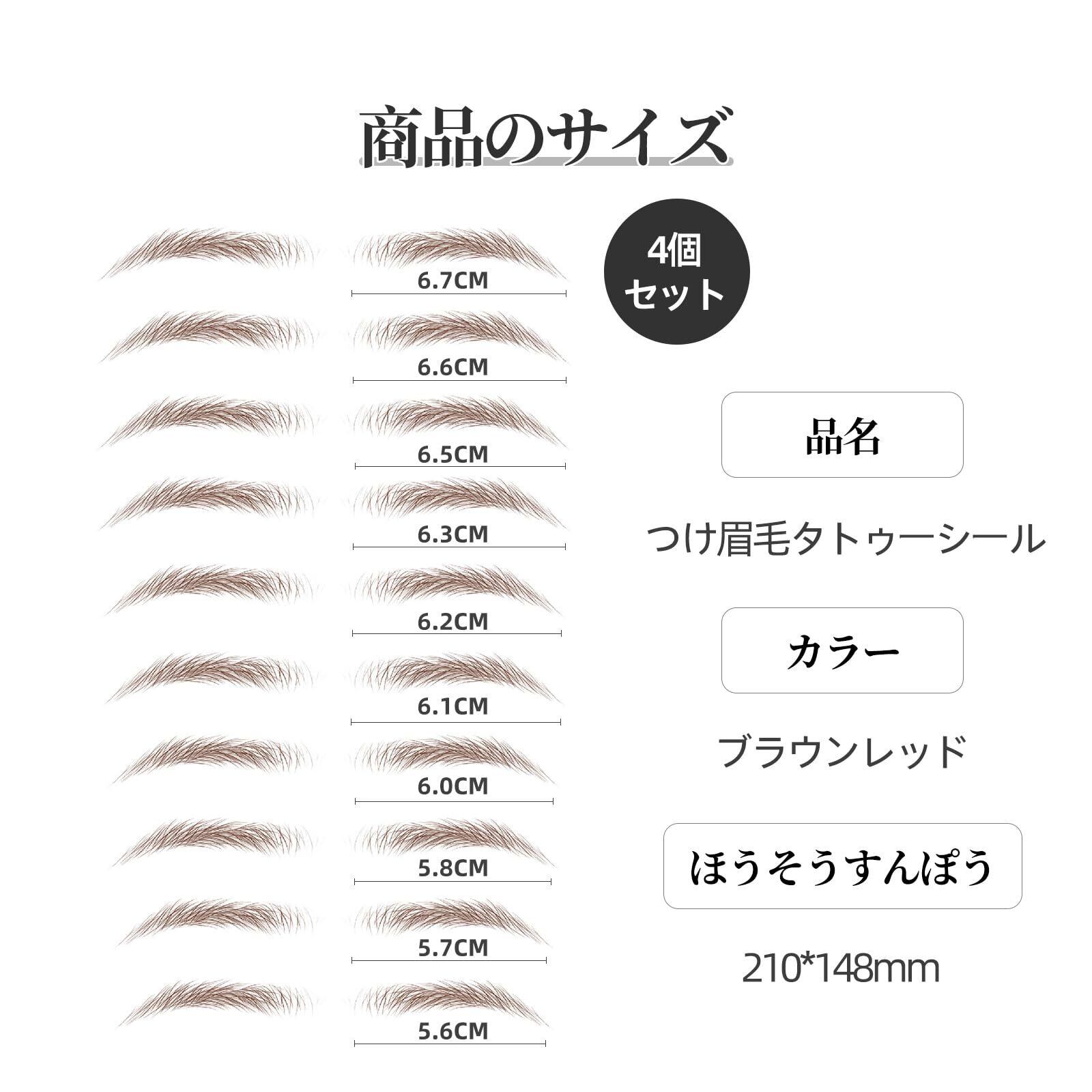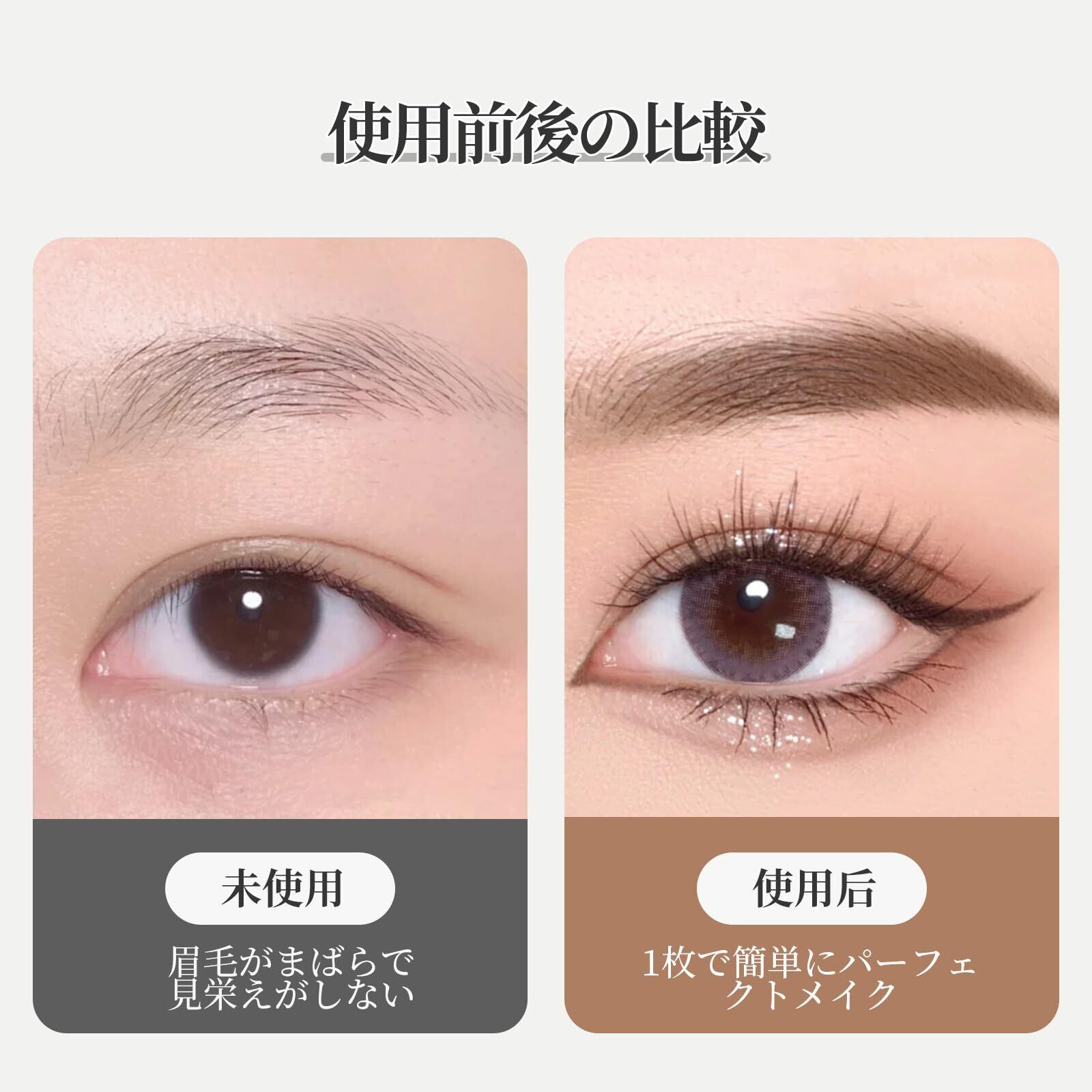 【考え抜かれたデザイン】眉毛の形は人によって様々で,幅も違うので,眉シールも様々なサイズをデザインしました。眉シールは1セットに40ペアがあり,約40回に使用可能です。1枚シールには大きいから小さいまで10ペアがあります,使用する際には見極めて使ってください。