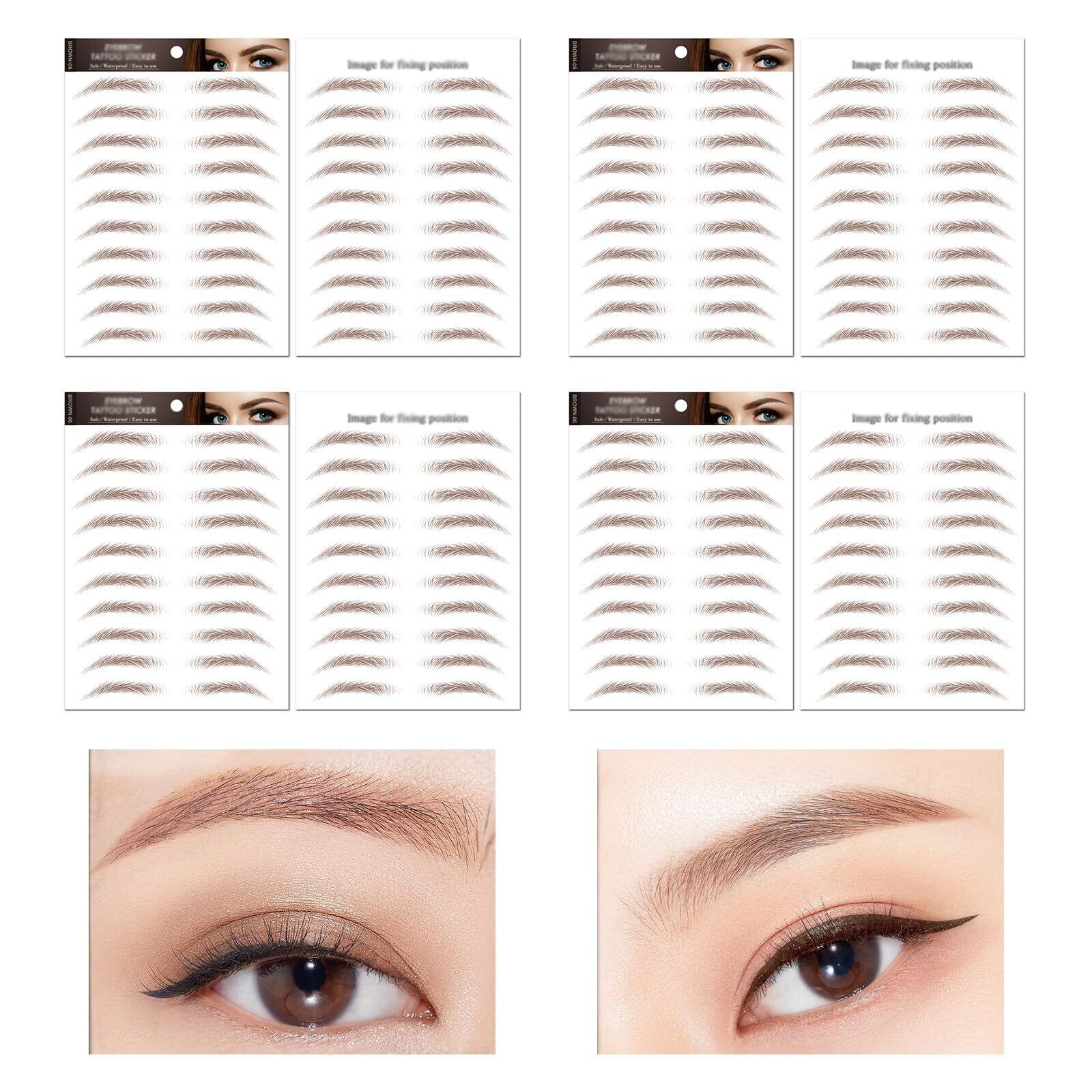 Doyime 眉シール (4セット) つけ眉毛タトゥーシール 眉毛ステッカー 消えない 眉毛 メイクシール 防水 6d アイブロウ シール 化粧品シール アートメイク 左右対称 耐久性 自然 男女兼用 (BROWN-06)