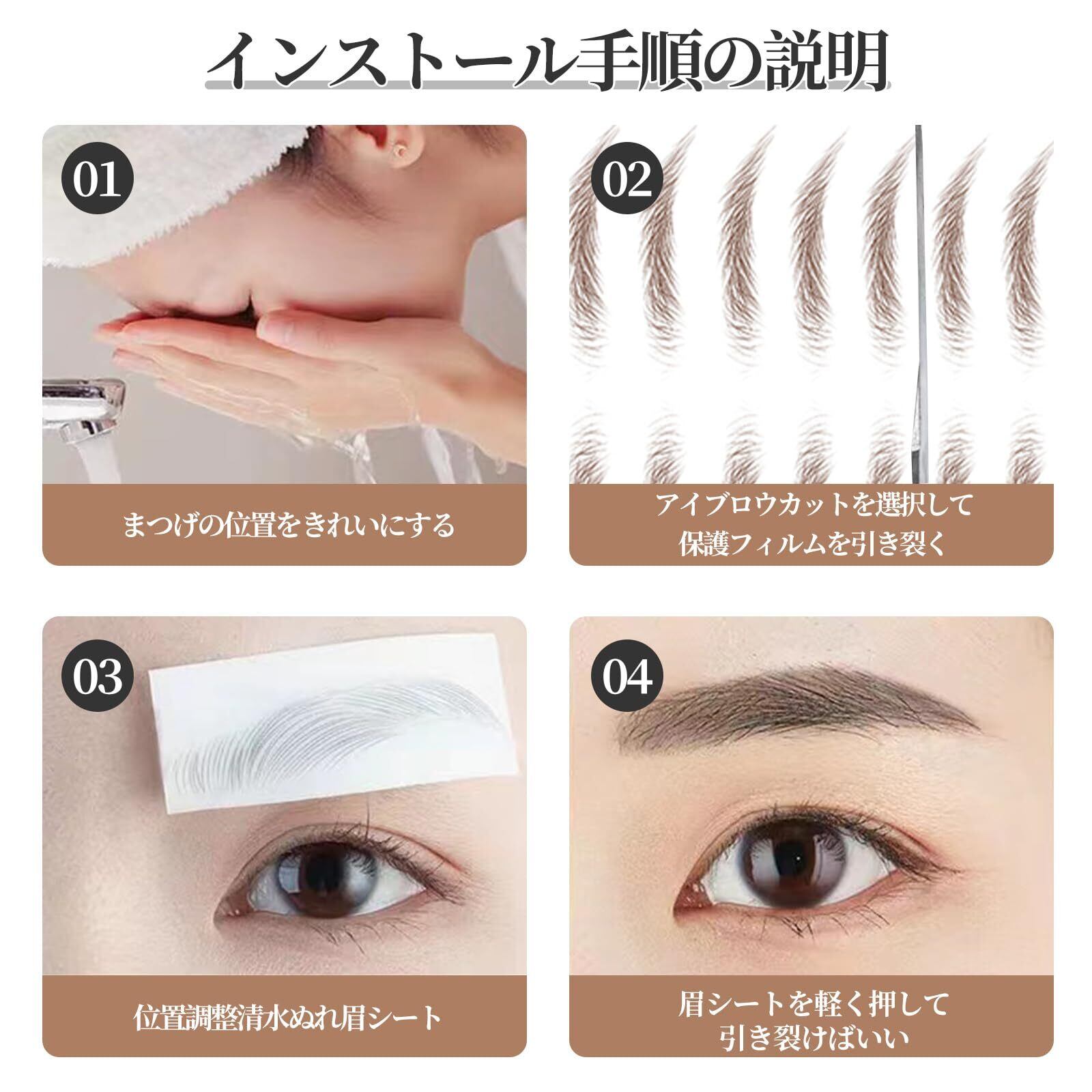 【使いやすく】6d眉シールは水で湿らせて眉に塗るだけです。10秒待って,希望の眉の外観を完成させます,眉 アート メイク,眉毛のスタイルやサイズは日本人にふさわしく,6dナチュラル眉シールは髪の毛のようなタッチで,信じられないほどリアルなディテールで。