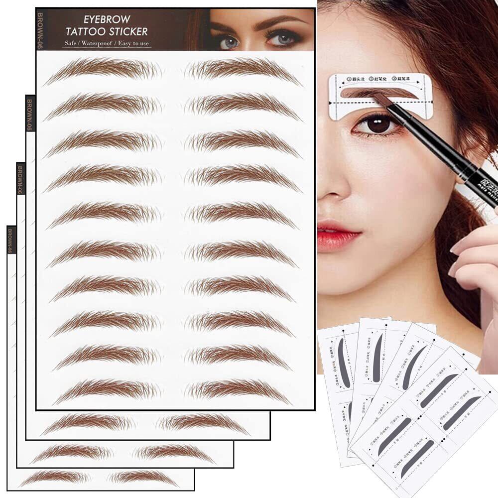つけ眉毛タトゥーシール 眉 アートメーク 眉毛ステッカー 【眉毛テンプレート付き 8ペア 】メイクシール眉毛 40ペア 4D6Dナチュラルまゆげ アイブロウ 消えない 防水 眉タトゥーシール自然な髪眉毛シール 男女兼用 眉付けタトゥー 耐久性 (BROWN-06)