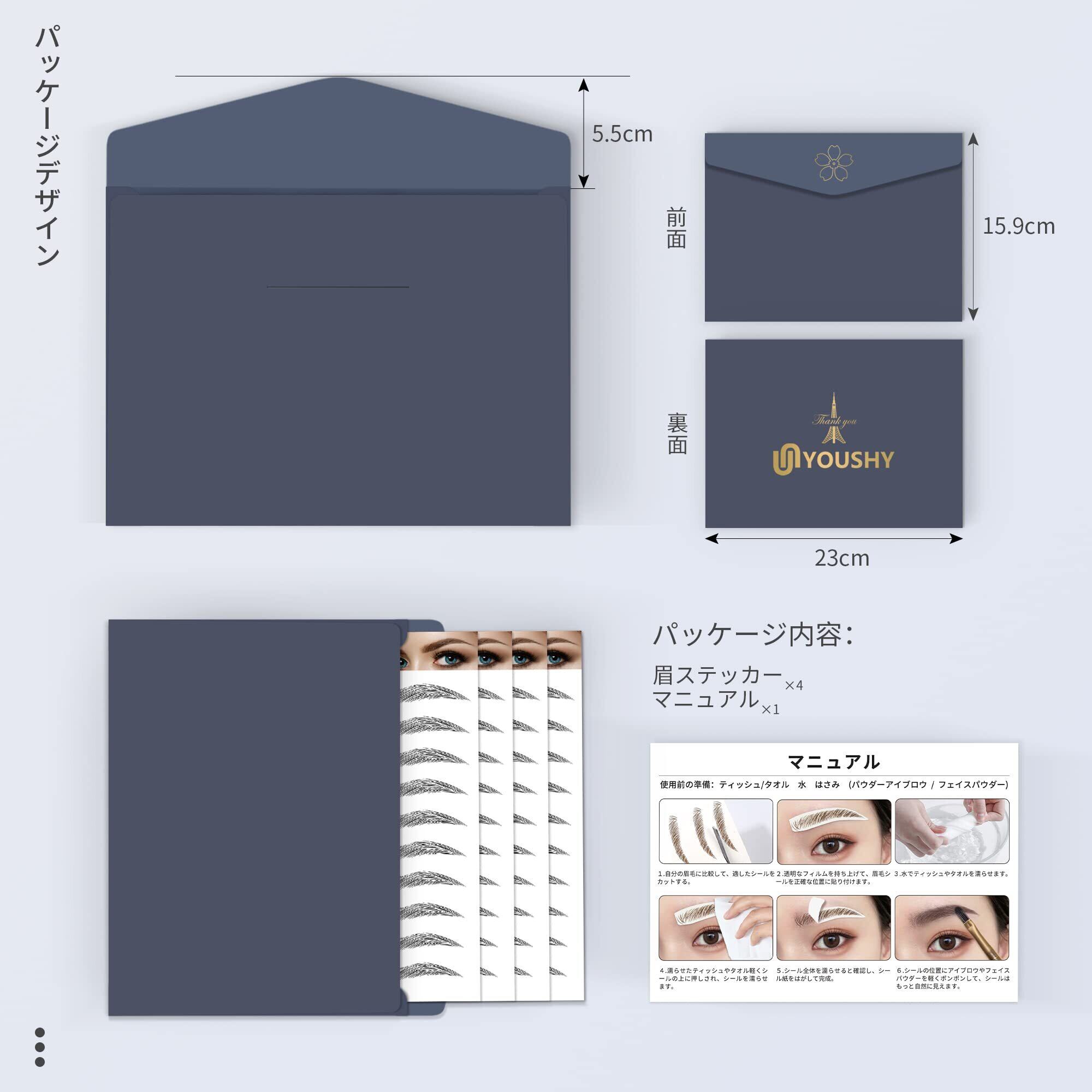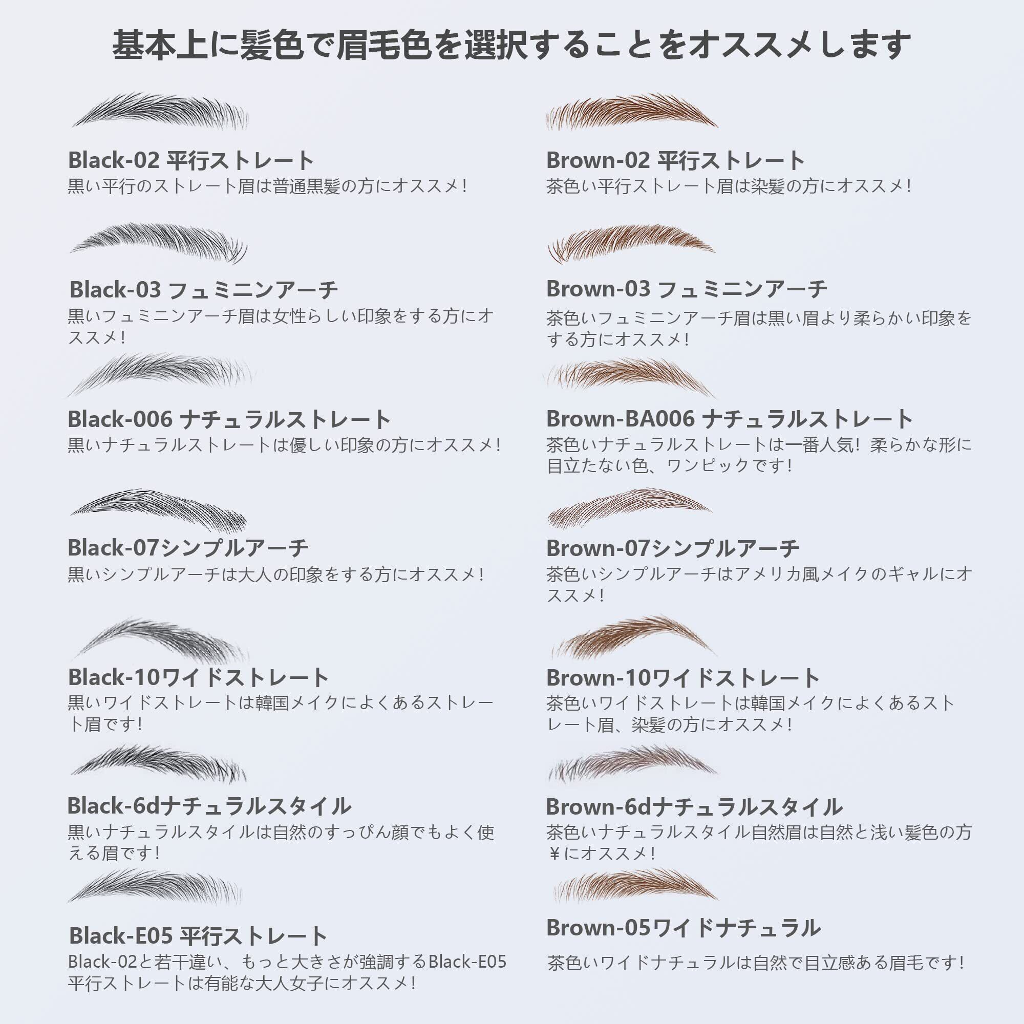 【選択可能】眉毛シールには様々種類の色があり、選択しが多いです。眉毛のスタイルやサイズにも日本人にふさわしく設計されています。眉シールは1セットに40ペアがあり、約40回に使用可能です。1枚シールには大きいから小さいまで10ペアがあります、使用する際には見極めて使ってください。
