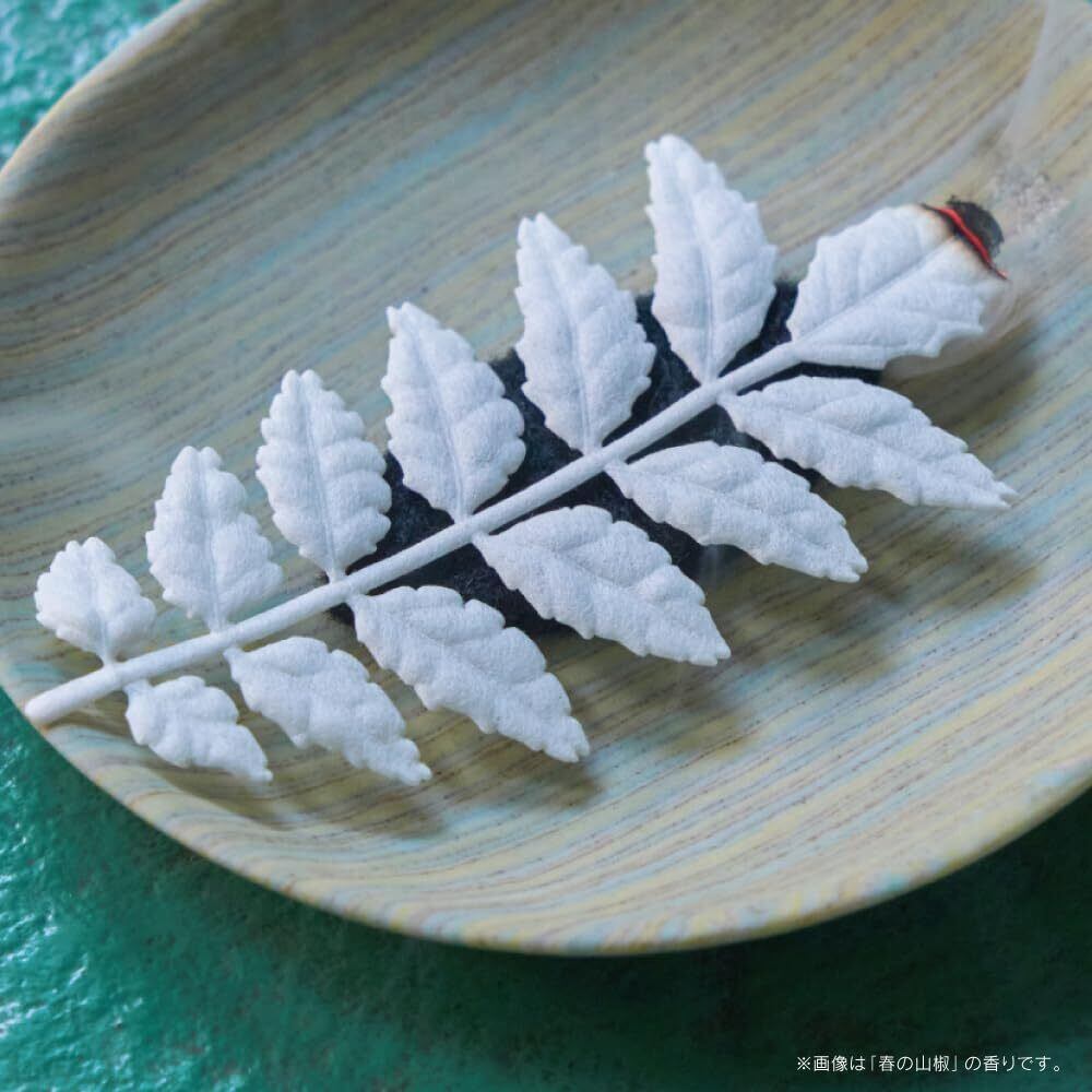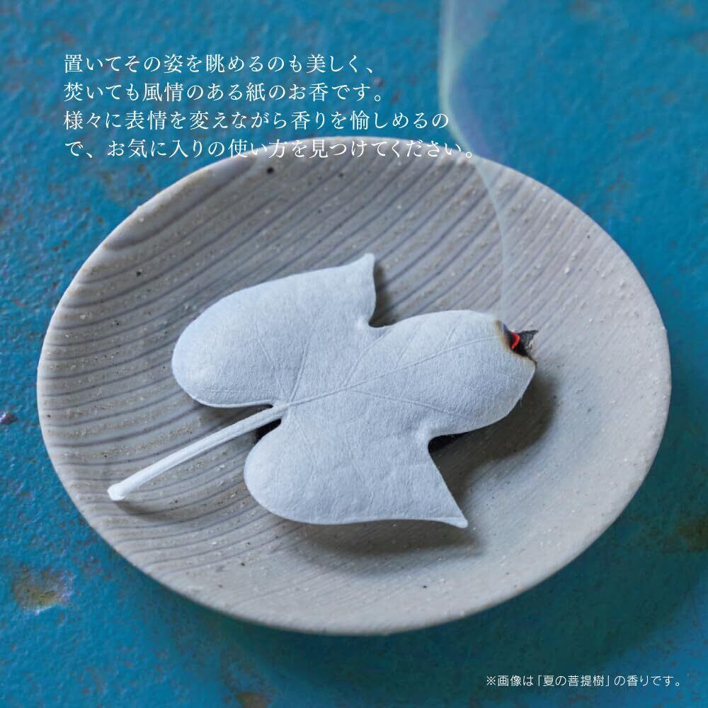 紙でできた、葉っぱのお香「HA KO」。置いて香り、焚いて香りが広がります。和の趣のある異なる香りが入っており、いろんな香りを楽しめるのでお気に入りの香りを見つけられます。他にはない葉っぱ型のペーパーインセンスは、見た目も美しく、様々に表情を変えながら自然を感じる趣深い香りを愉しめる和紙のお香です。