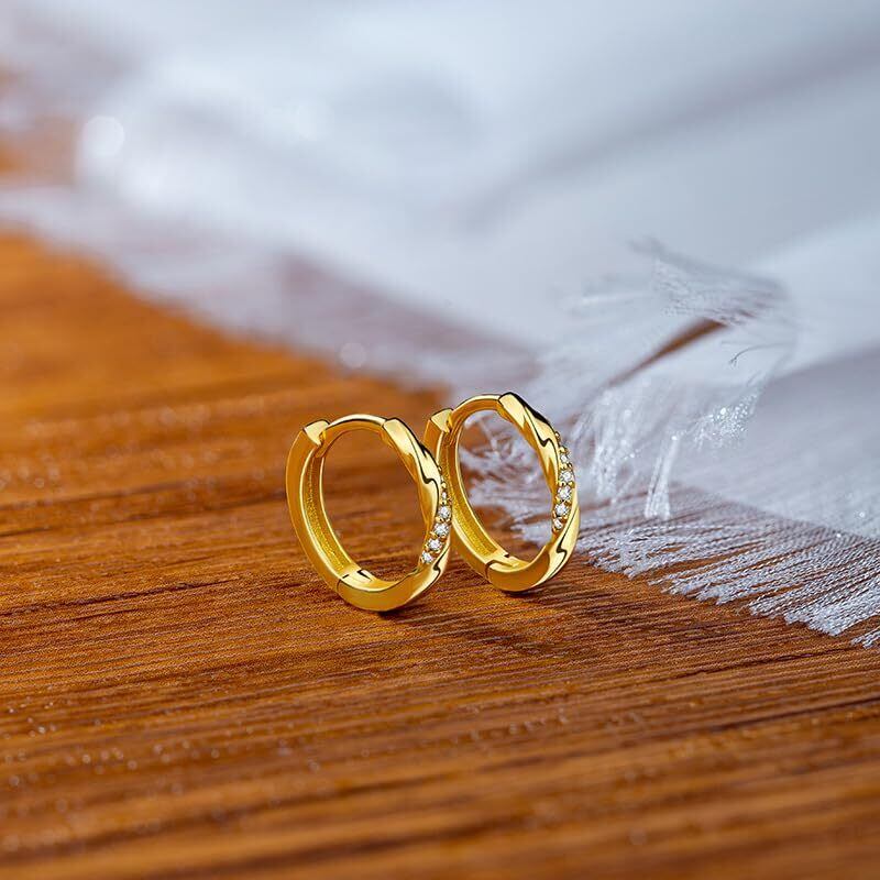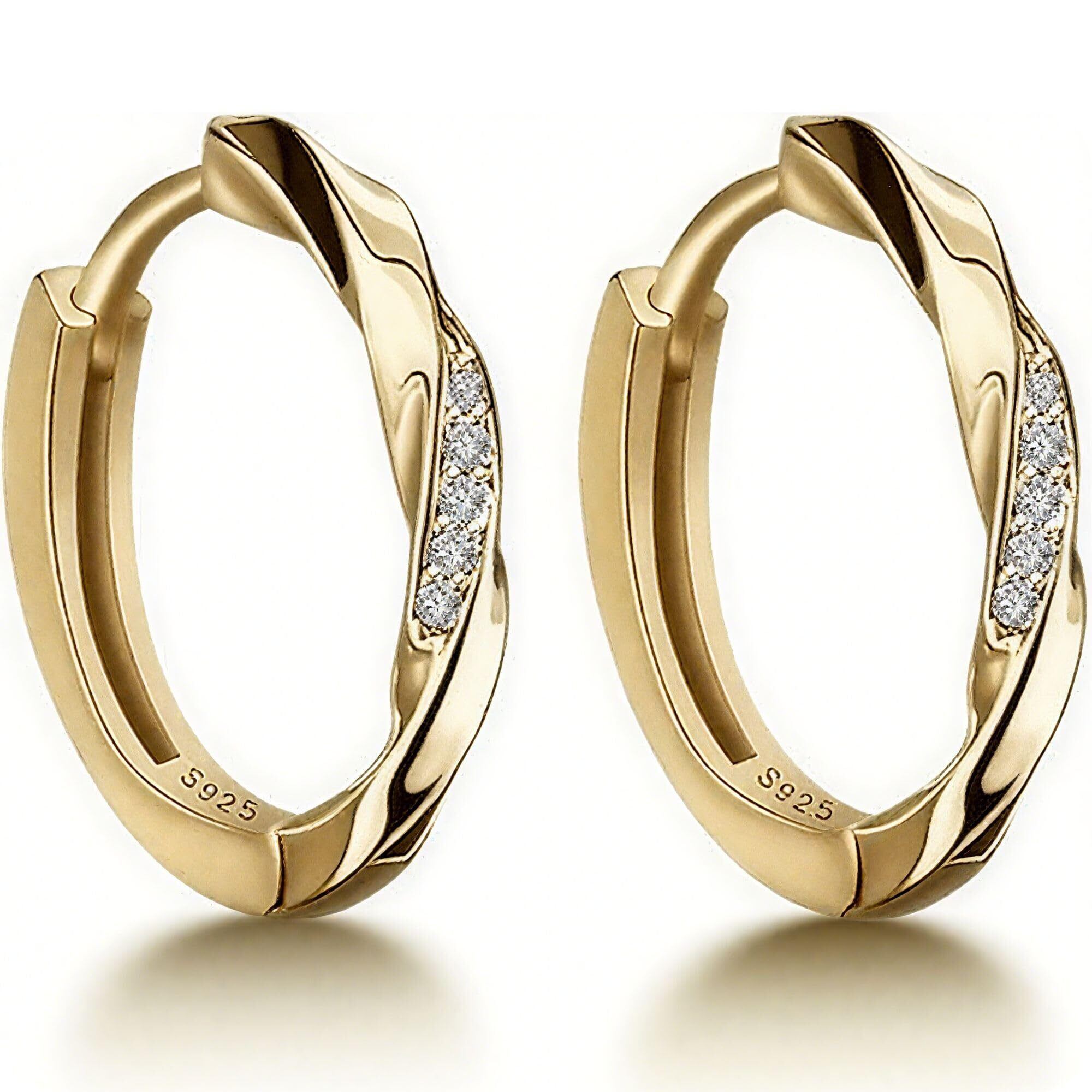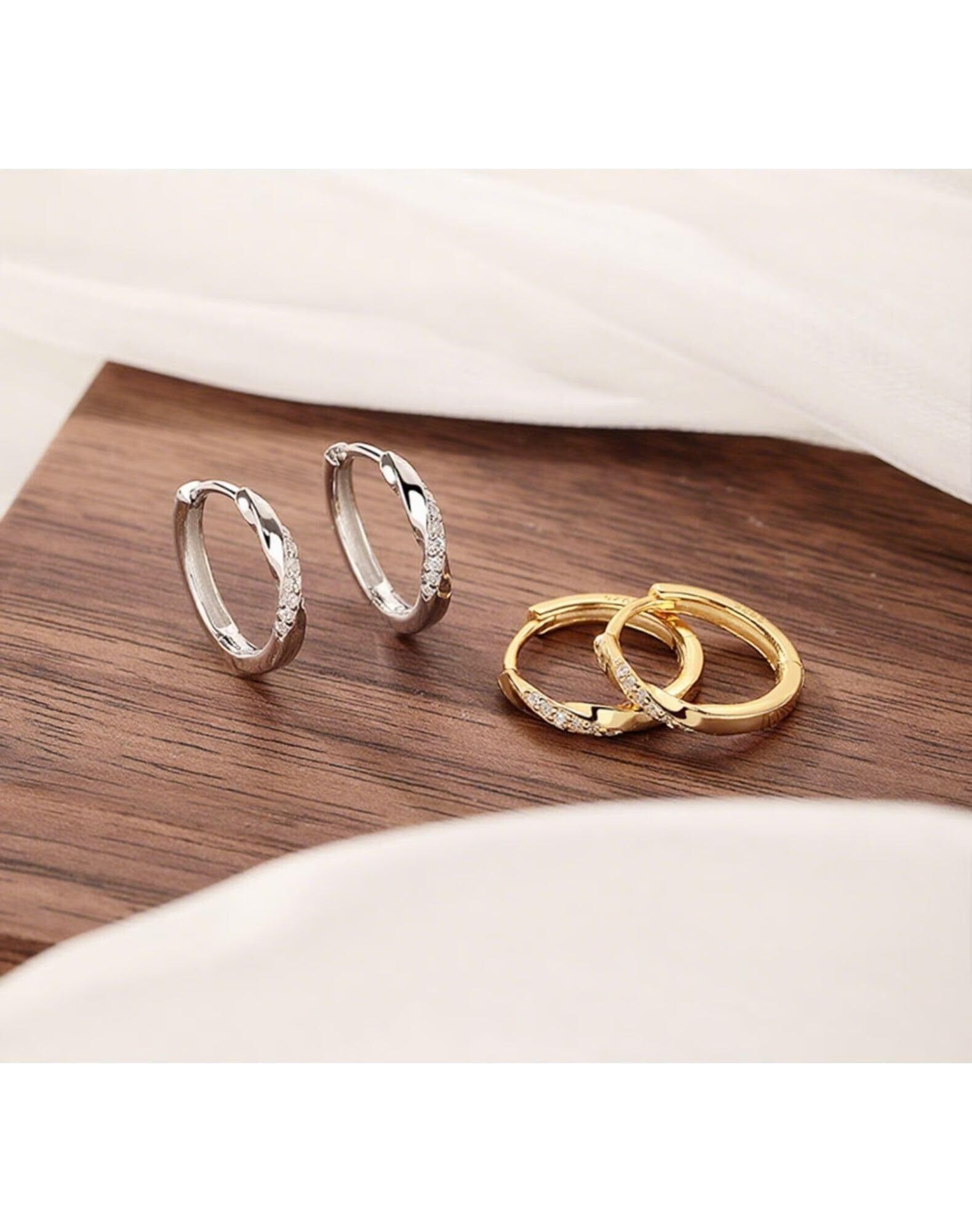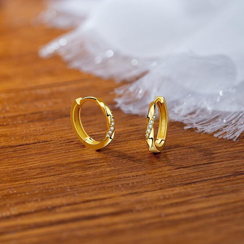 キラキラのジルコニアピアス:フープピアスのデザインコンセプトは「メビウスの輪」をイメージしツイストした滑らかな曲線で、途切れることのないその形が 「永遠の愛」・「無限の可能性」を象徴します。