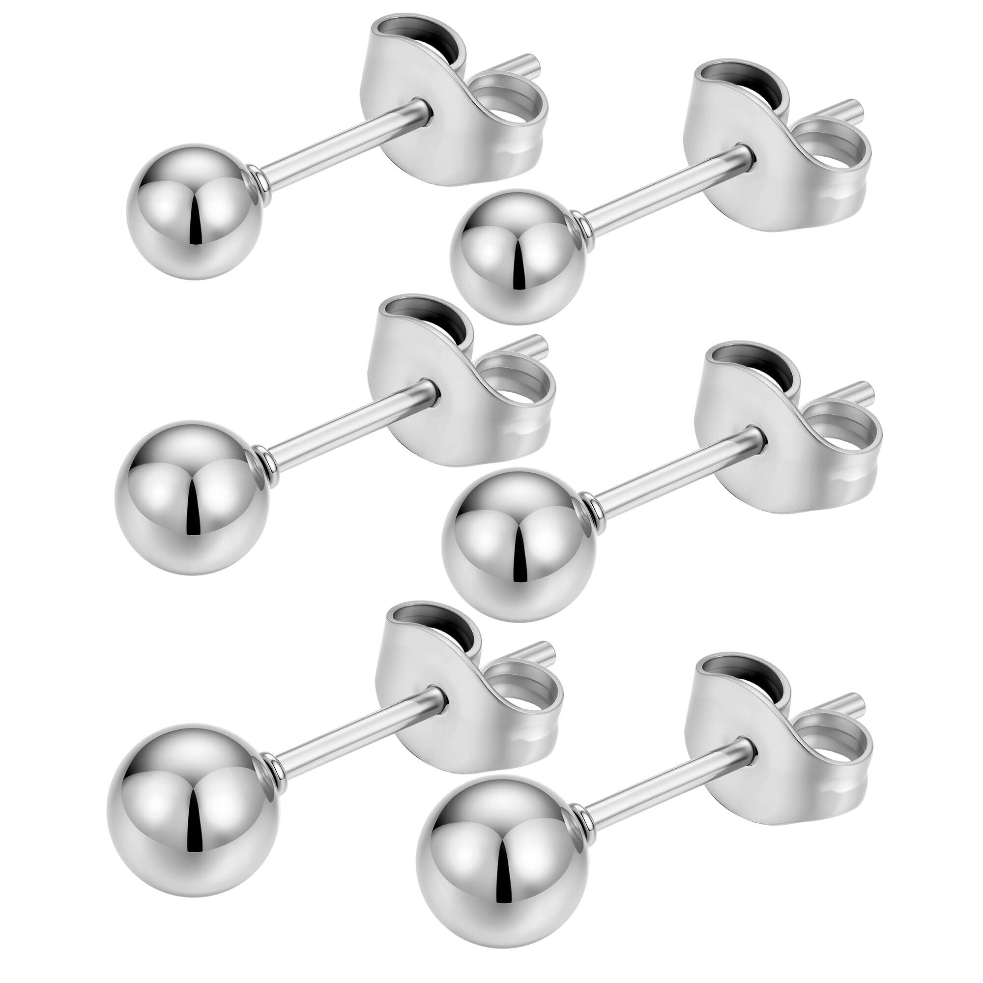 [Turandoss] サージカルステンレス ボールピアス つけっぱなし 金属アレルギー対応 丸玉 スタッドピアス メンズ レディース 小さい シンプル 目立たない 3ペア/セット 両耳用 2mm/3mm/4mm/5mm