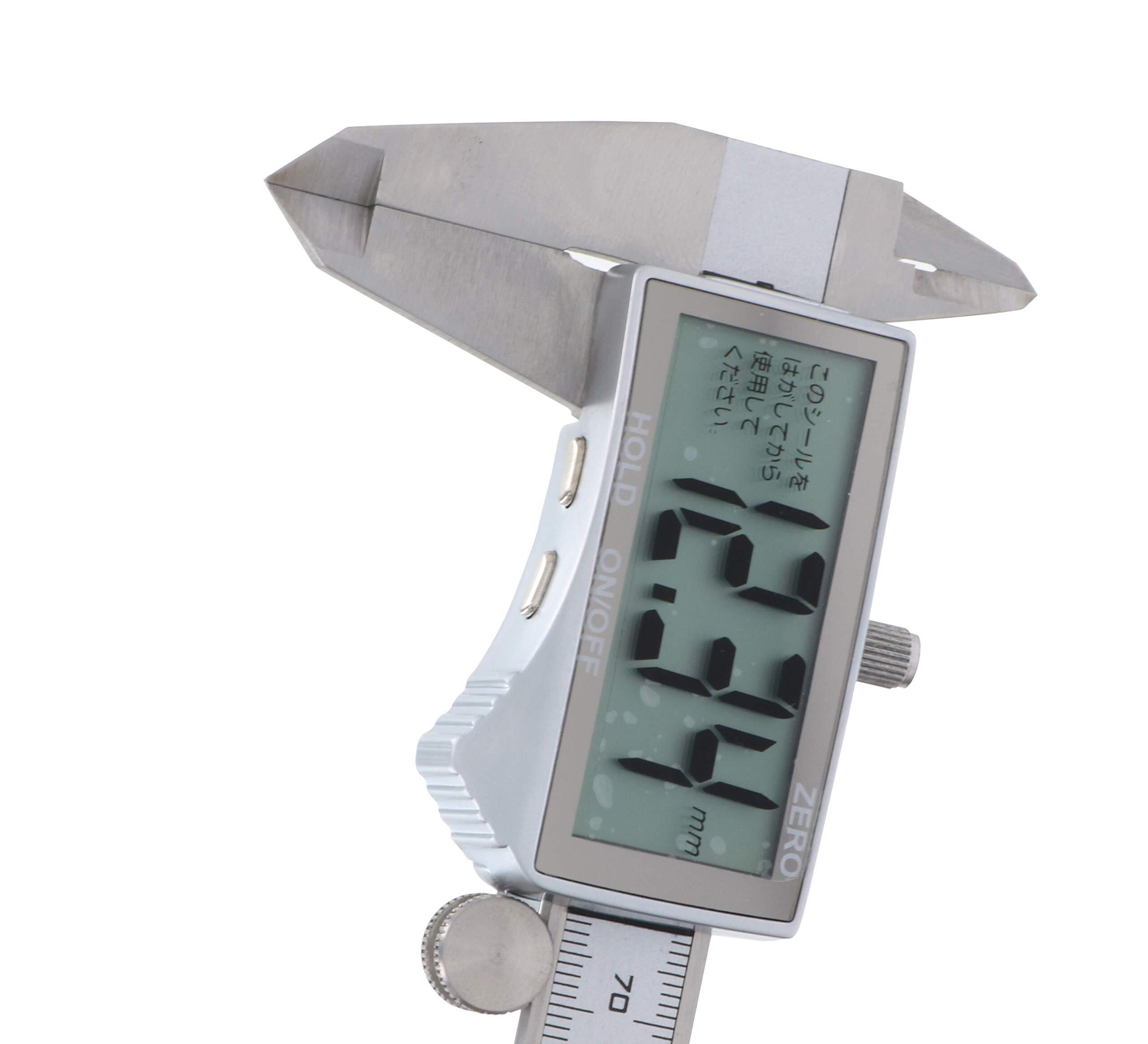 使用電池:ボタン型リチウム電池(CR2032×1個)、電池寿命:通常使用で約、測定範囲:0.01~150mm、最小読取値:0.01mm、繰り返し精度:0.01mm、使用温度:5~40℃、自動消灯:約5分30秒、質量:約195g、器差:外側±0.03mm、内側±0.03mm、最大応答速度:3m/s、保存湿度:60%以下、保存温度:-10~40℃