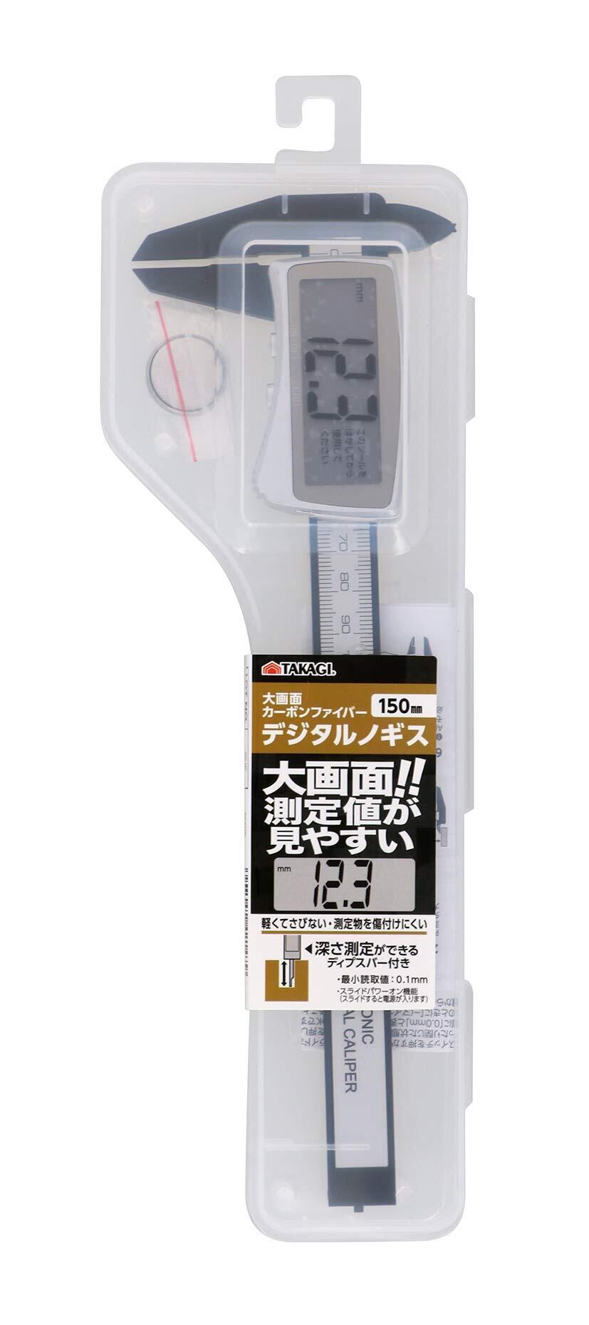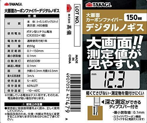 高儀 カーボンファイバー デジタルノギス 大画面 軽くてさびない 150mm TAKAGI 外側 内側 段差 深さ 多機能 スライドパワーオン テスト用電池付き 4907052421479 たかぎ