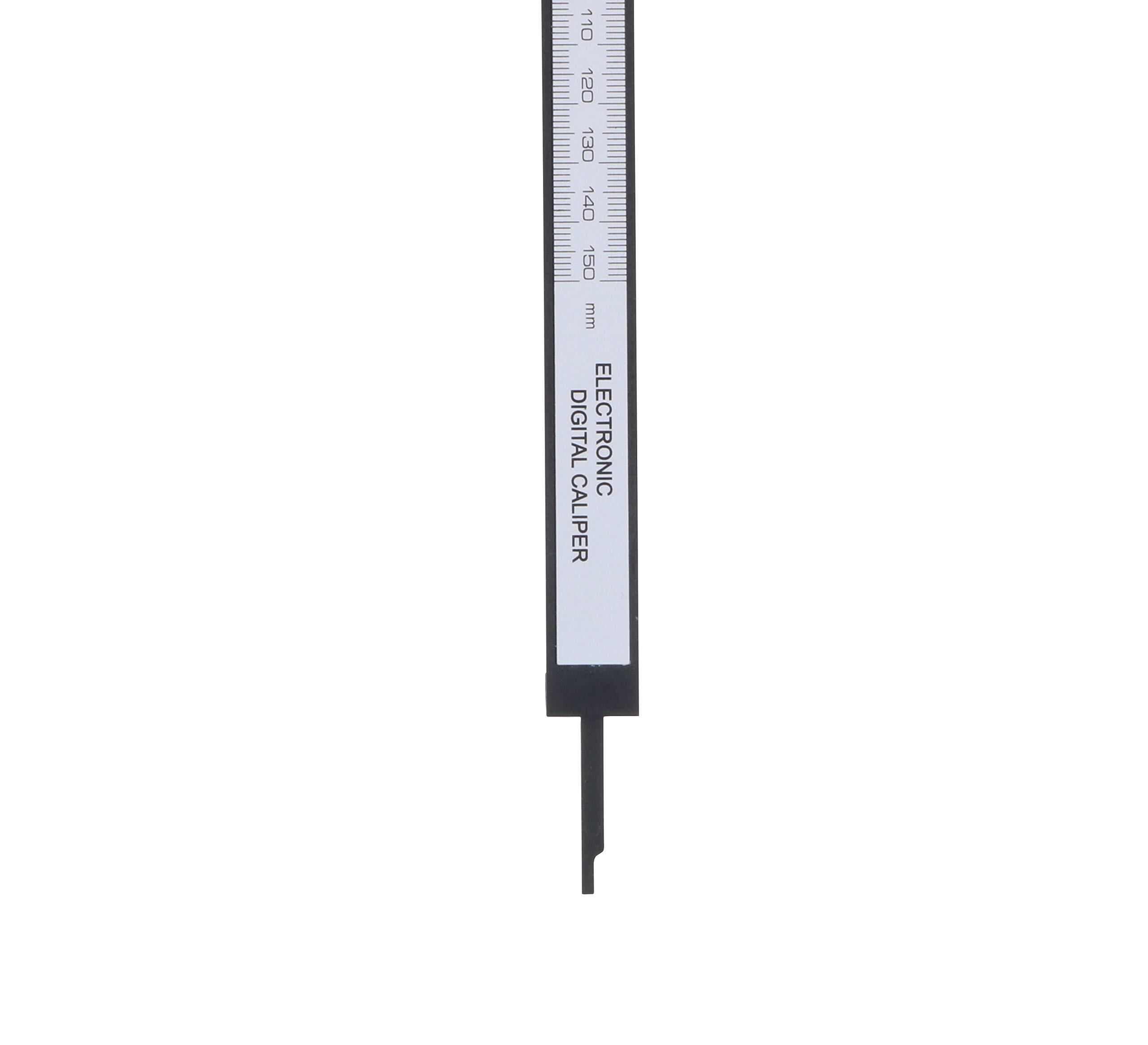 使用電池:ボタン型リチウム電池(CR2032×1個)、電池寿命:通常使用で約、質量:約55g、測定範囲:0.1~150mm、最小読取値:0.1mm、自動消灯:約5分30秒、繰り返し精度:0.1mm、器差:外側±0.03mm、内側±0.05mm、最大応答速度:3m/s、使用温度:5~40℃、保存湿度:60%以下、保存温度:-10~40℃