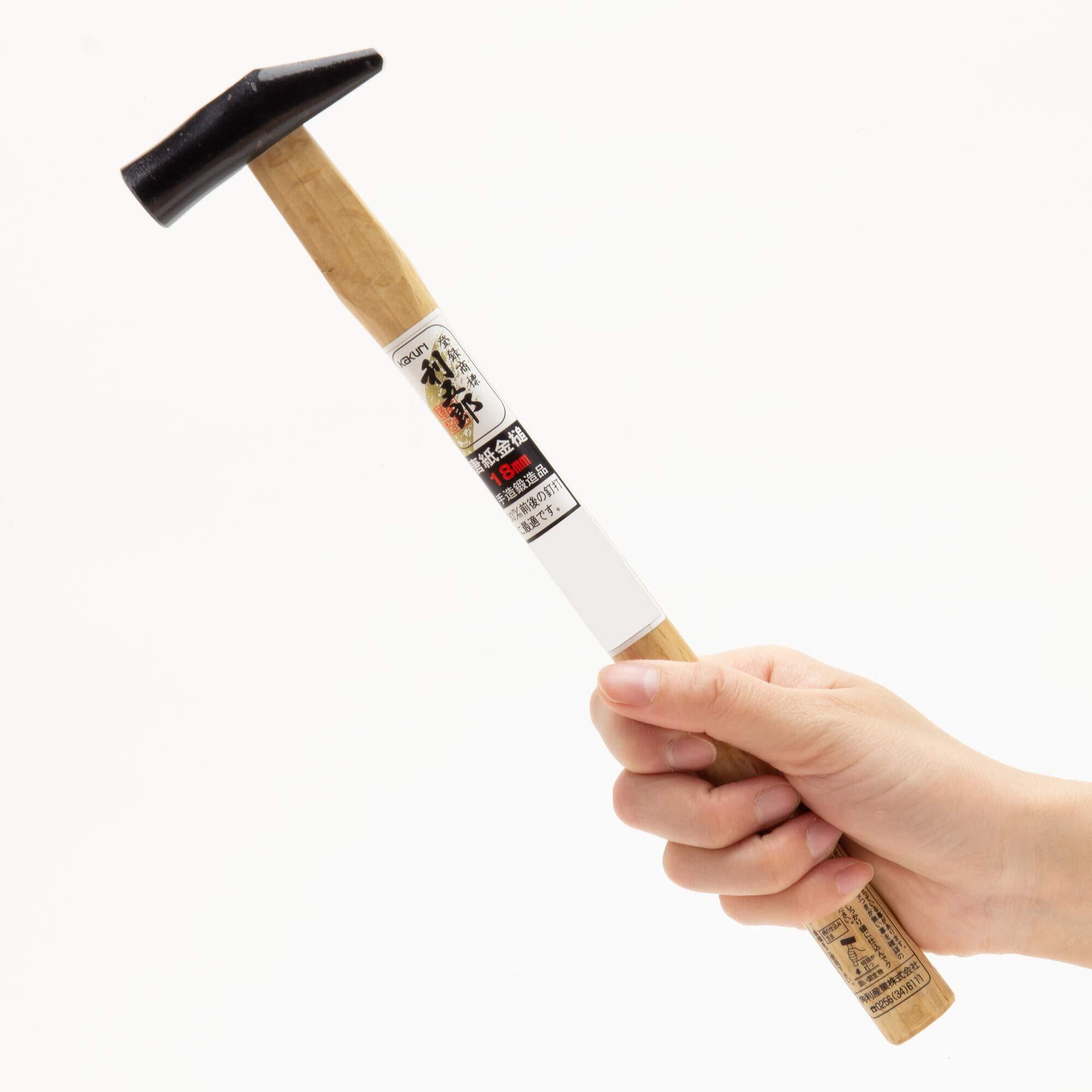 小型の金槌。一端が打撃面、もう一端が尖がっていて、先端は丸みがかかっている。