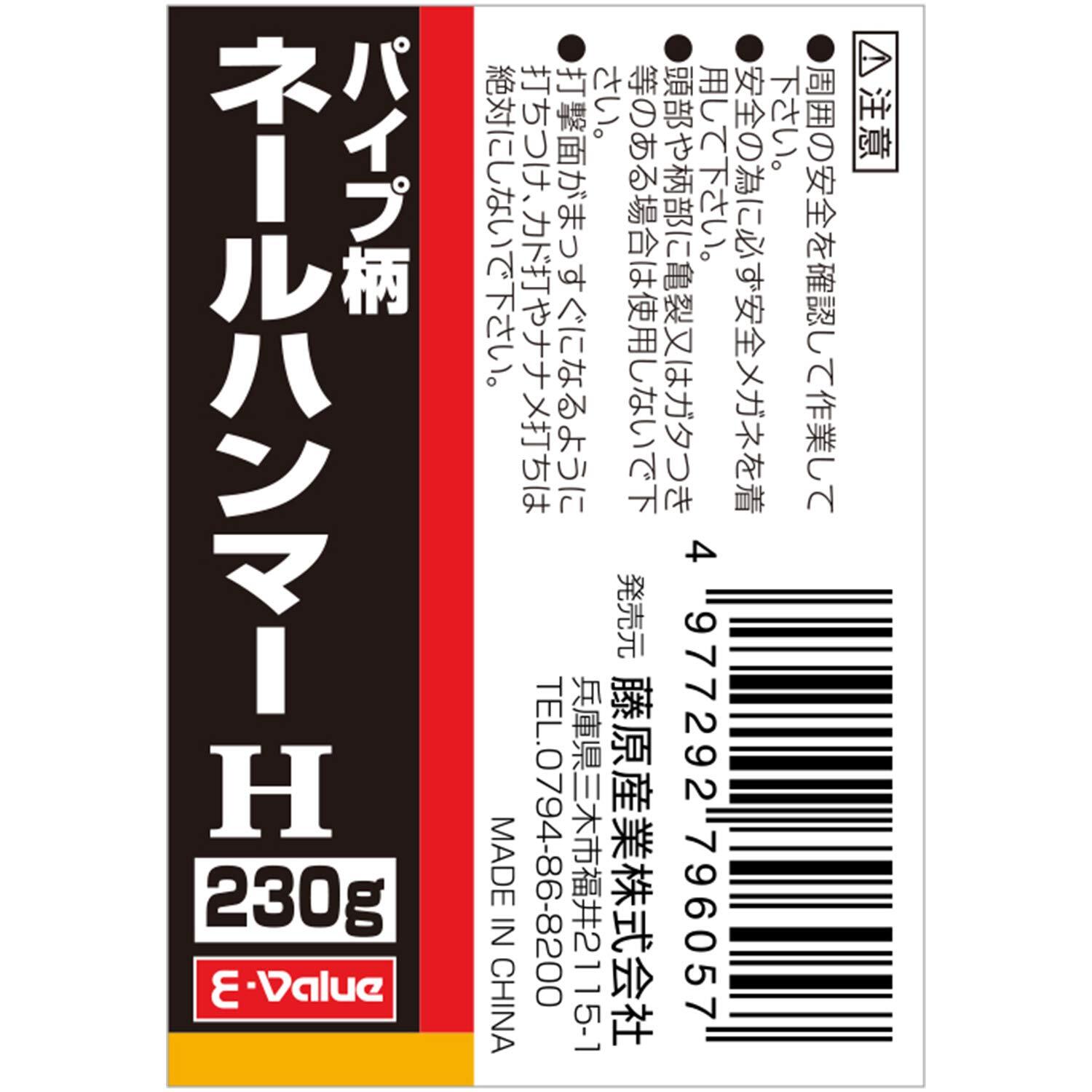 イーバリュー(E-Value) パイプ柄 ネールハンマー H 焼入れパイプ 230g