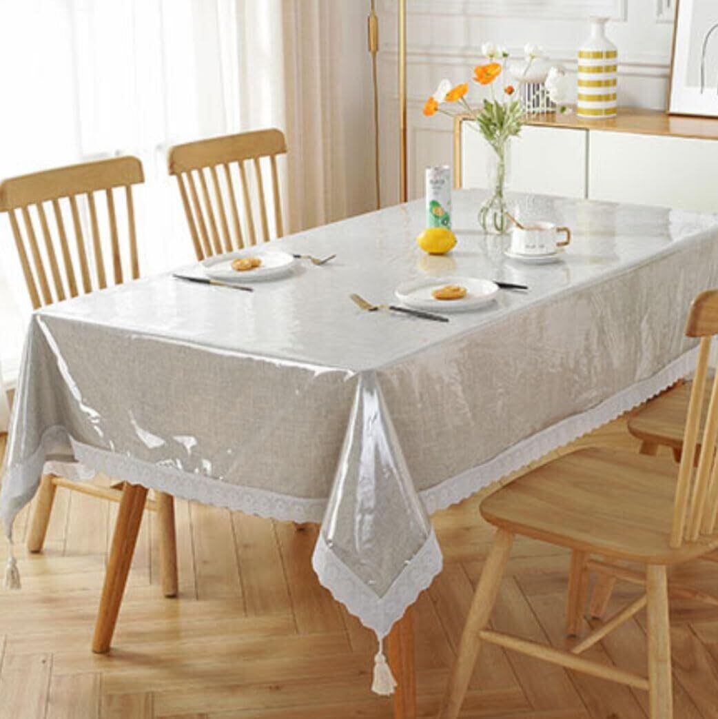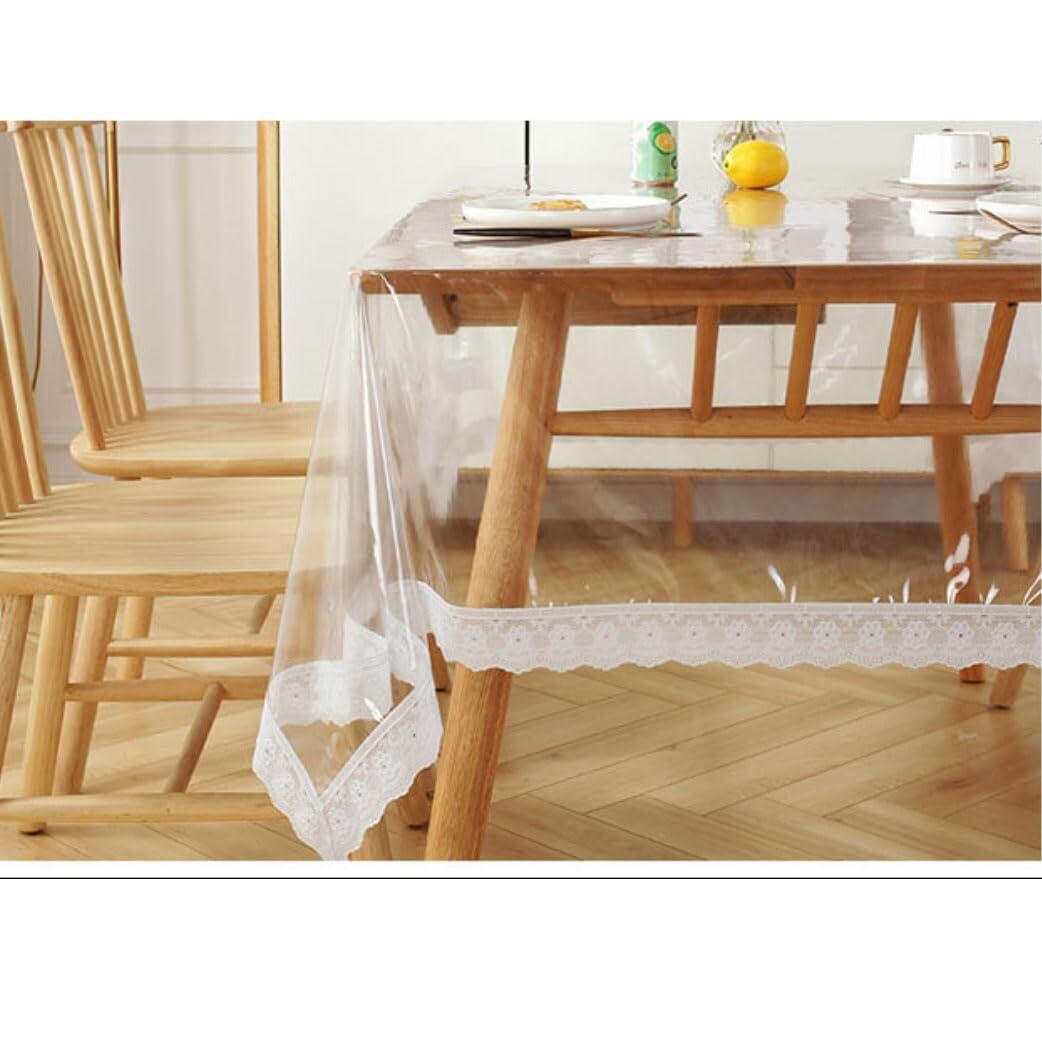 NaturesHome透明 テーブルクロス 150×150cm 150×190cm 0.2mm 厚い PVC製 テーブルマット デスクマット マット テーブルカバー ビニールマット テーブル保護カバー ビニールカバー 汚れ防止テーブルカバー (透明 レース 150*190cm)