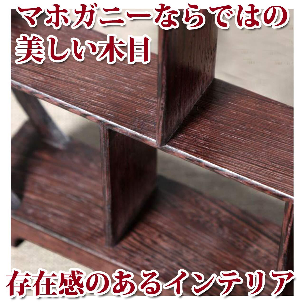 マホガニー製の高級感ある飾り棚:高級家具などに使われるマホガニーで作られた丸型の飾り棚です。マホガニーならではの赤茶色と濃い茶色の美しい木目が目を引きます。味わいのある手作りで、存在感のあるインテリアです。