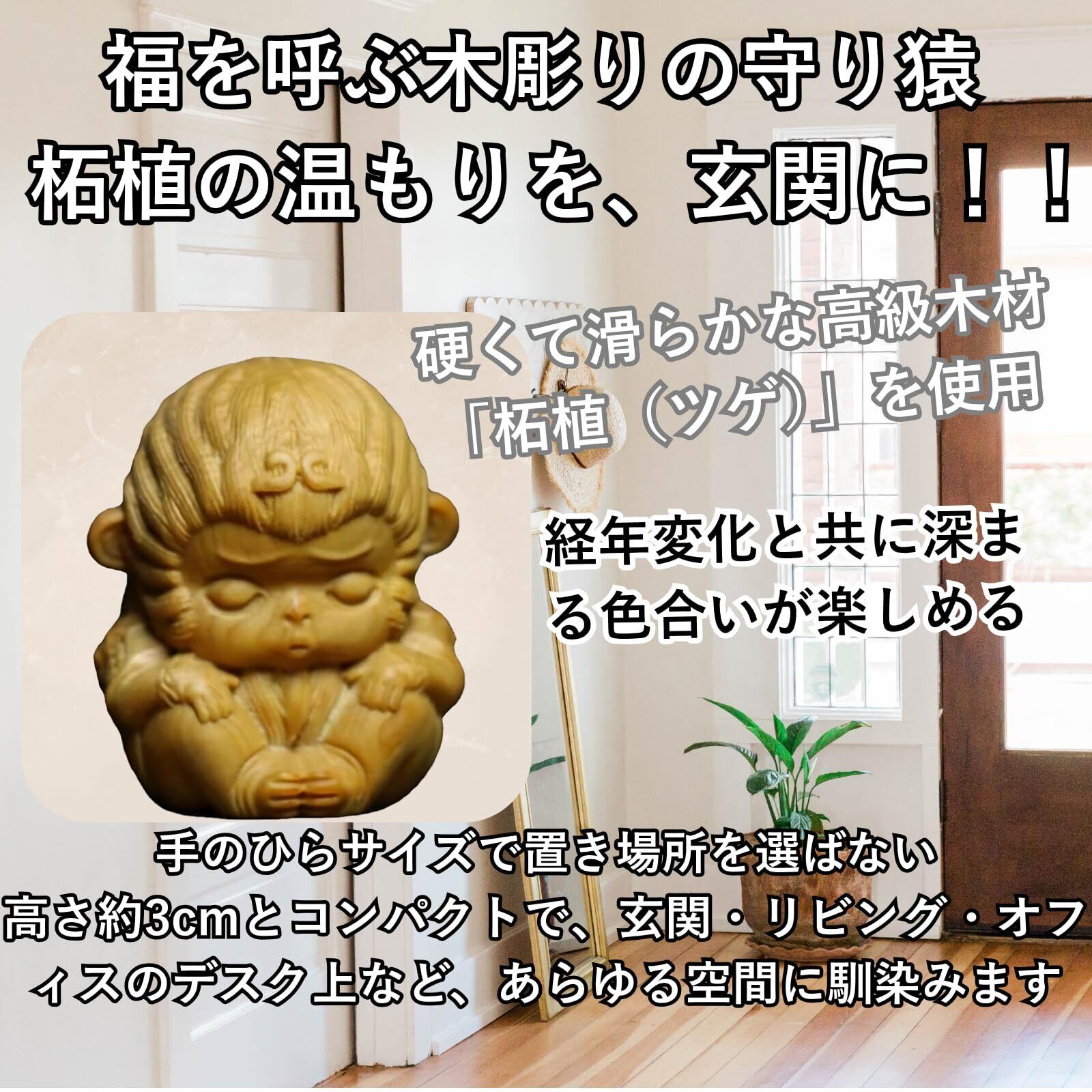 柘植彫刻 お念猿 手彫り 猿 サイズ3cm 天然木 オブジェ 置物 インテリア リビング 玄関 オフィス