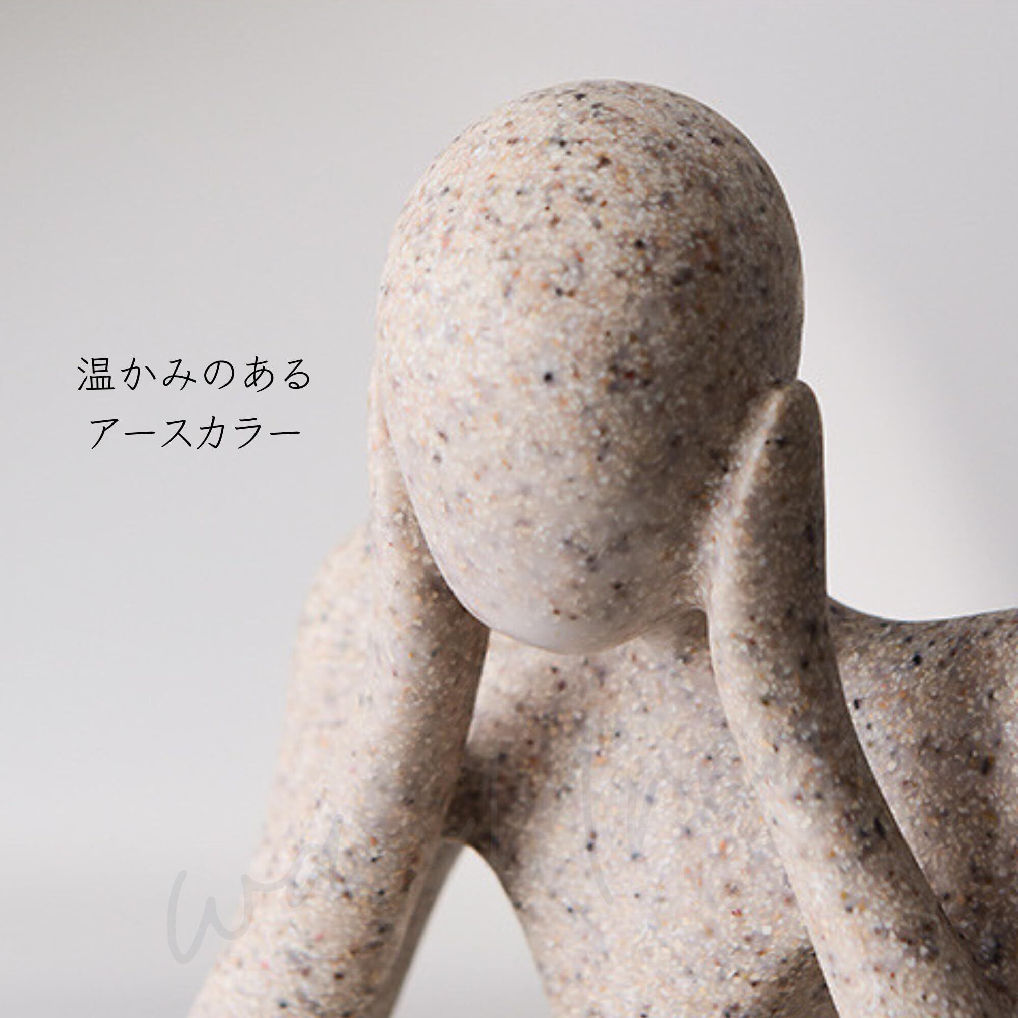 ヒューマンオブジェ【シンキングスタイル-3体セット】 人型オブジェ 置物 抽象アート モダン インテリア 雑貨 デコレーション 彫刻 飾り おしゃれ コンパクト 卓上 リビング 玄関 書斎 考える人 (アース)