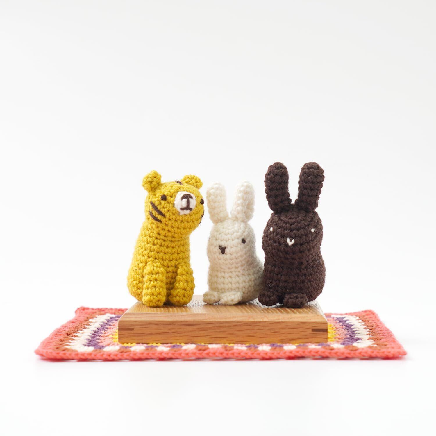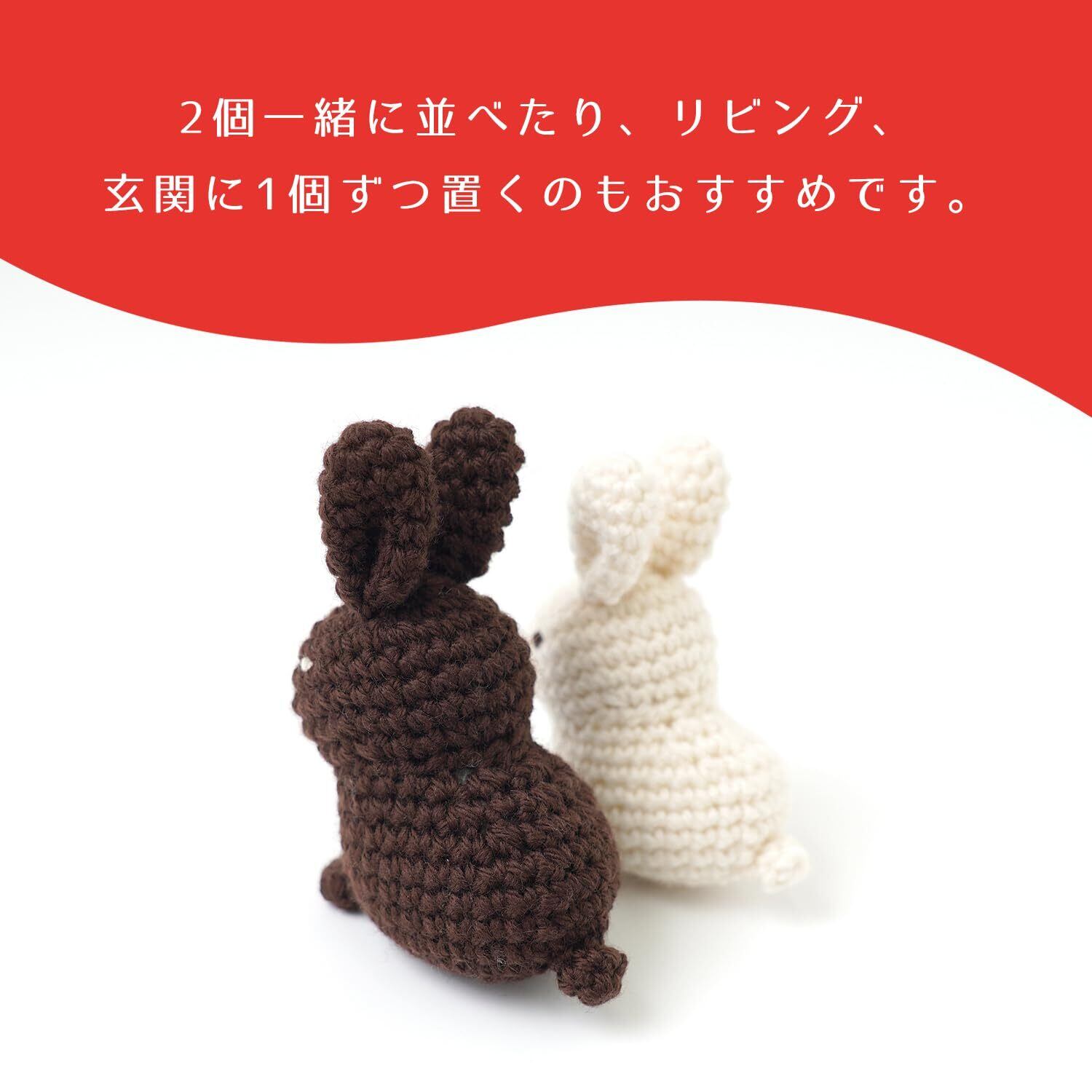 あみぐるみ作家ミドリノクマさんデザイン。2023年の干支、卯の編みぐるみキットです。このキットで白と茶のウサギさんが作れます。手のひらサイズで、丸いフォルムがかわいいですよ。