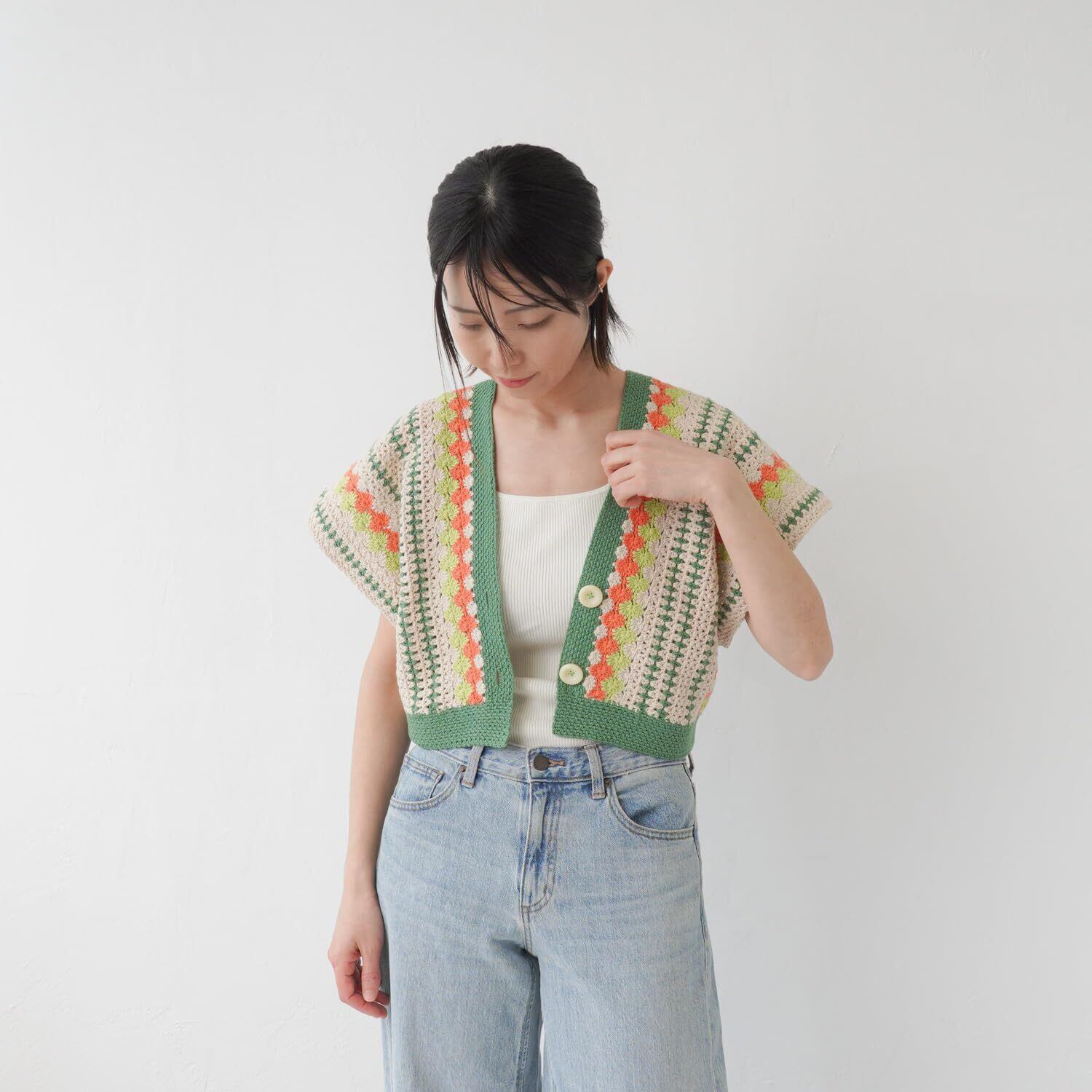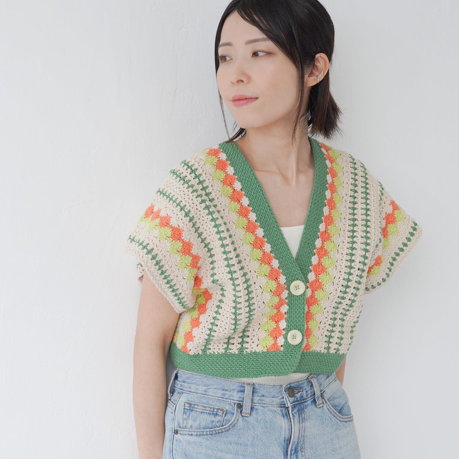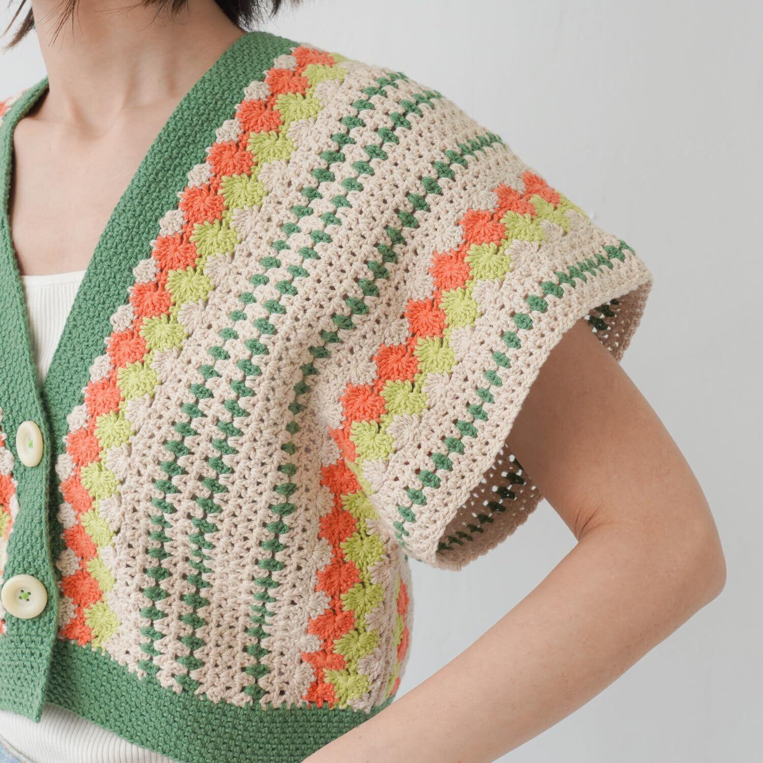 編み物キット #15-3 横編み配色のショート丈ベスト