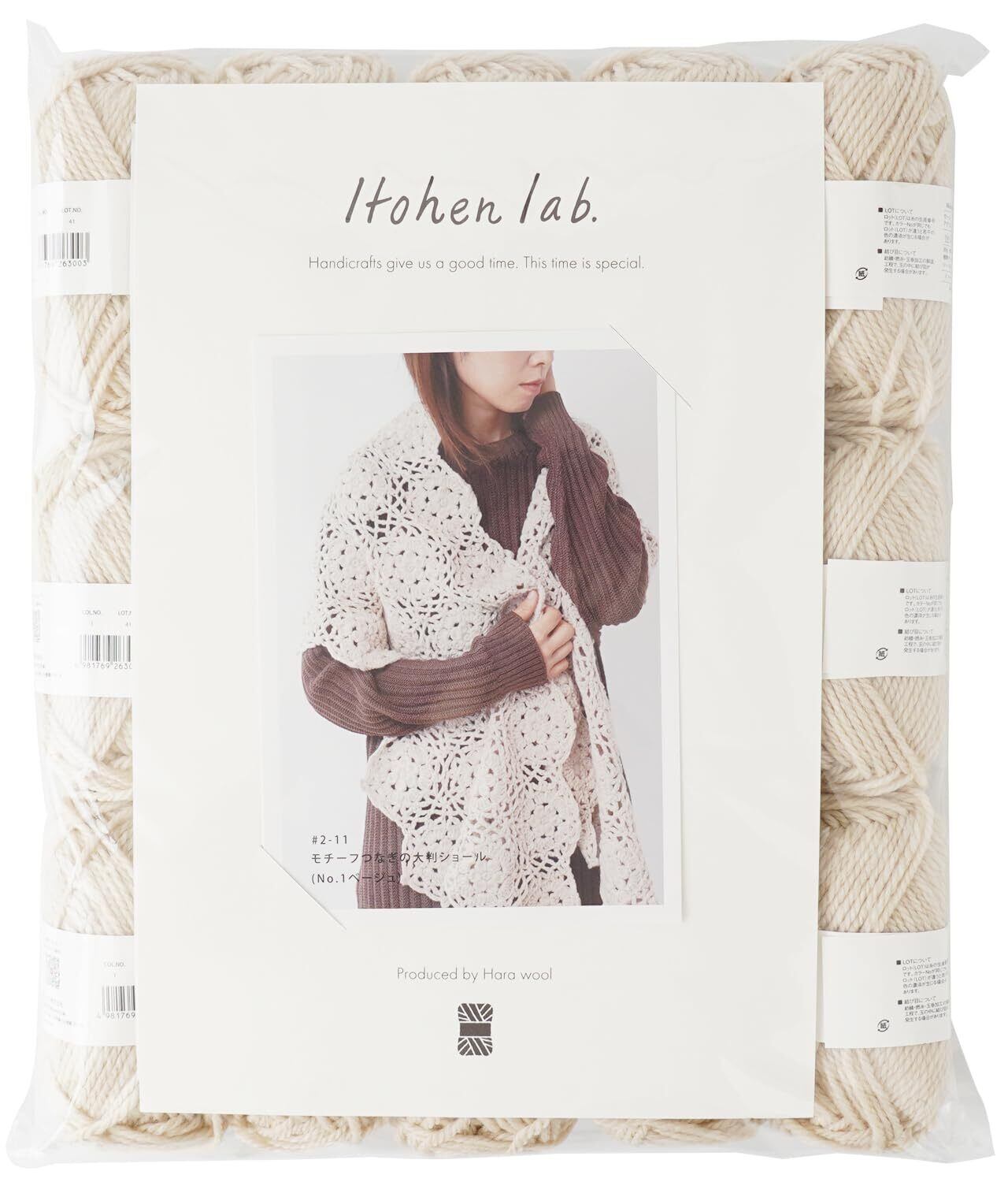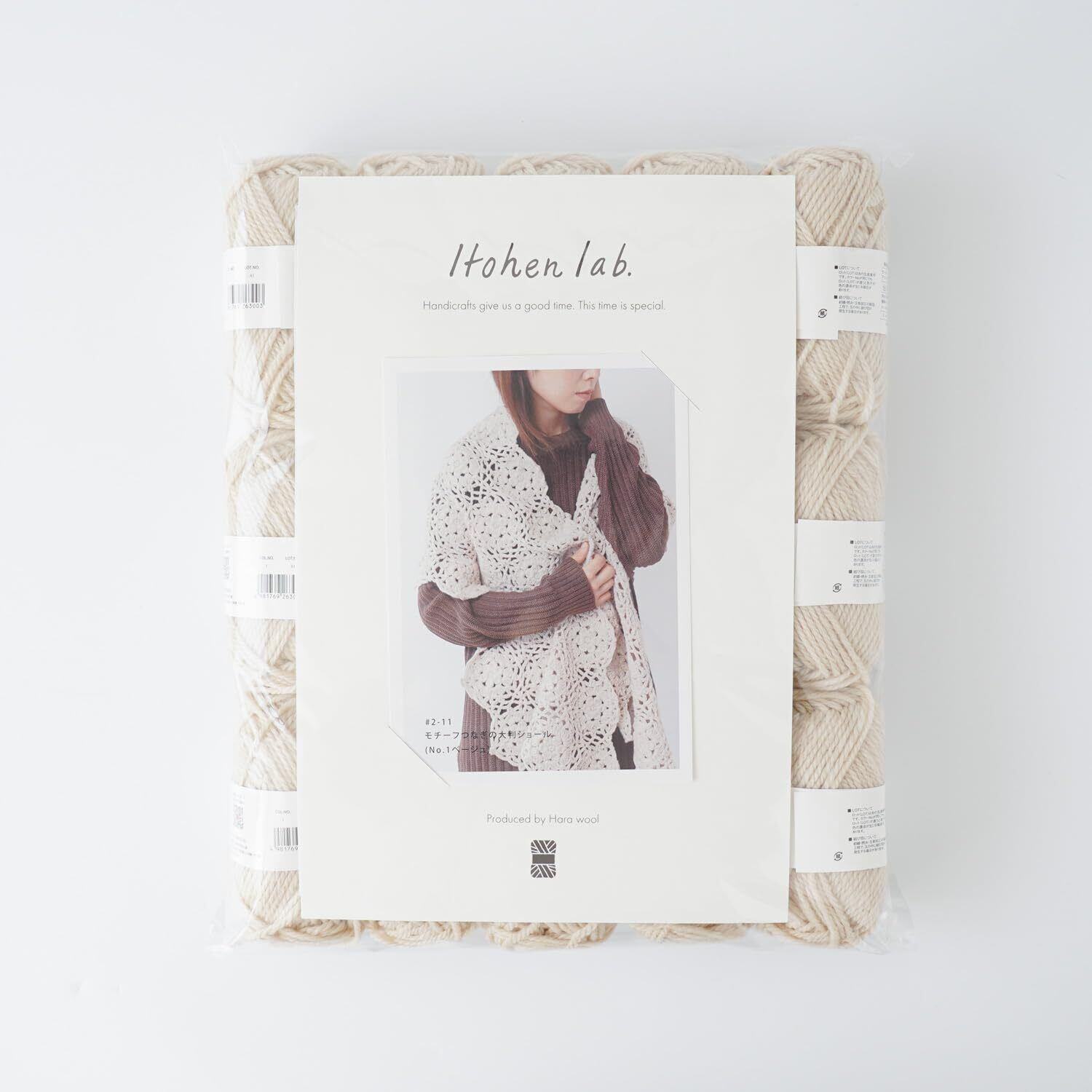 原ウール 編み物キット モチーフつなぎの大判ショール (1.ベージュ)