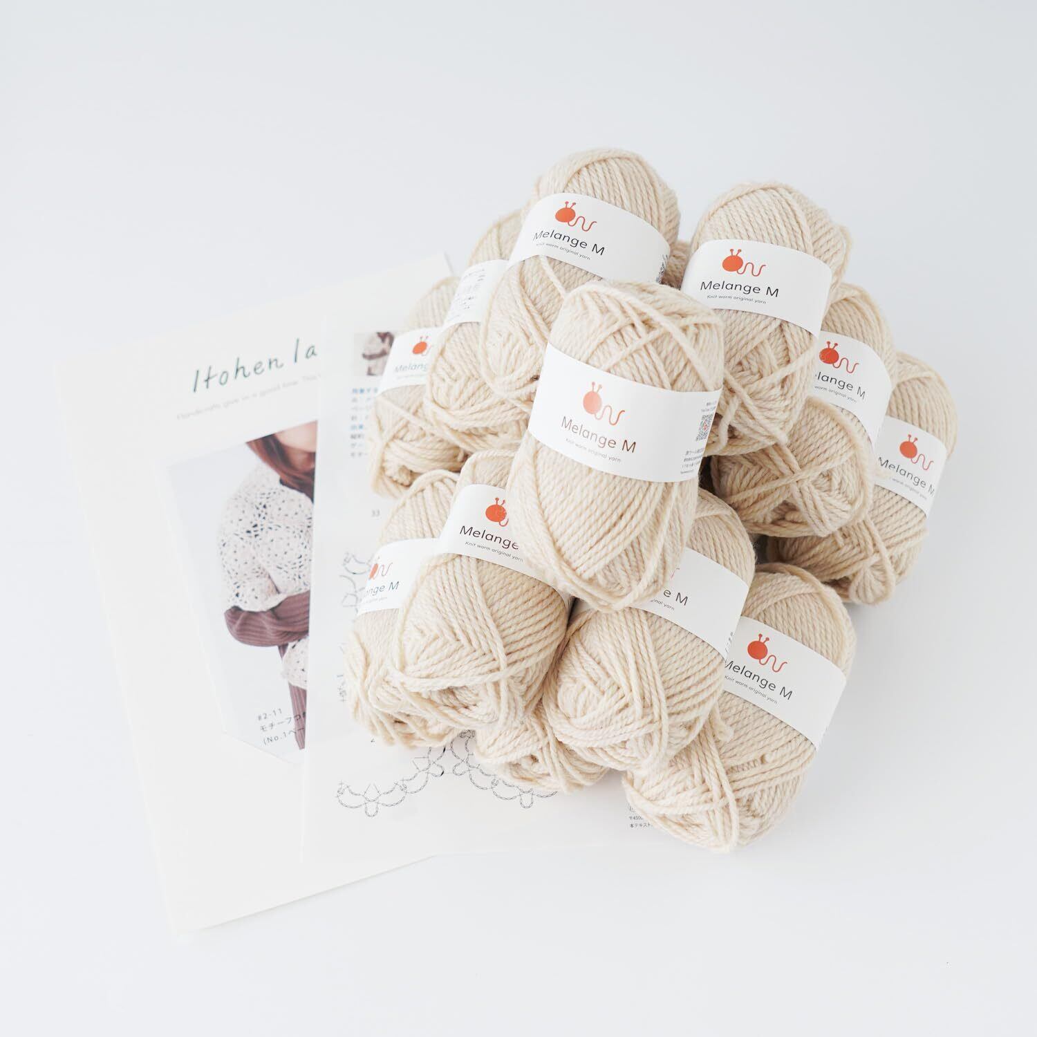 キット内容:メランジM(ベージュ)…15玉、レシピ…1枚(※基本的な編み方の解説は入っていません)