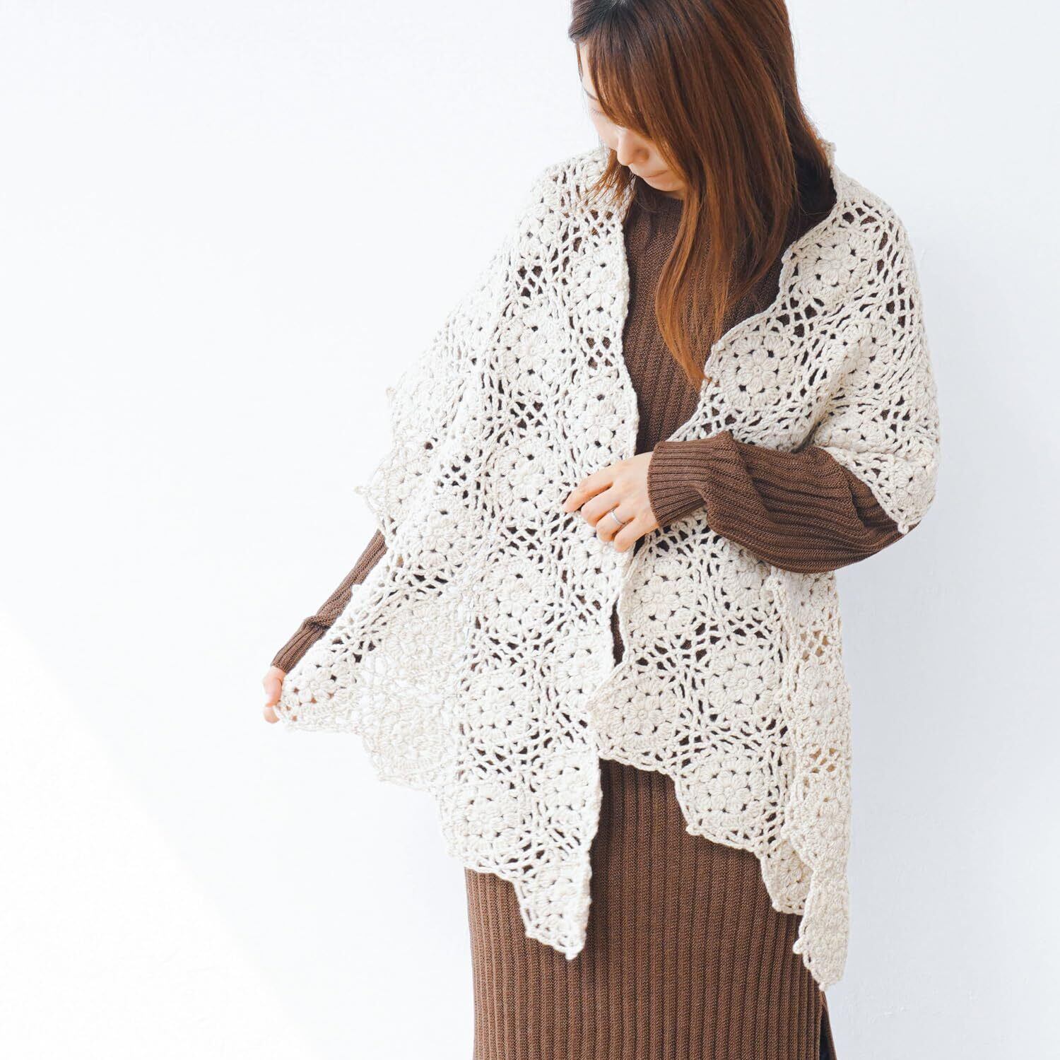かぎ針7/0号でザクザクとモチーフ編んでつなげる大判ショールの編み物キット