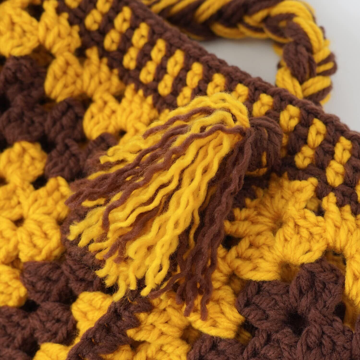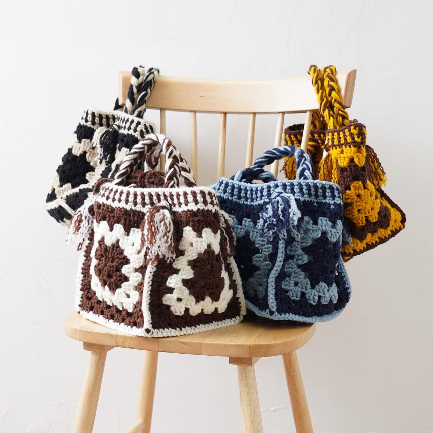 原ウール 編み物キット モチーフつなぎの大きめバッグ マスタード