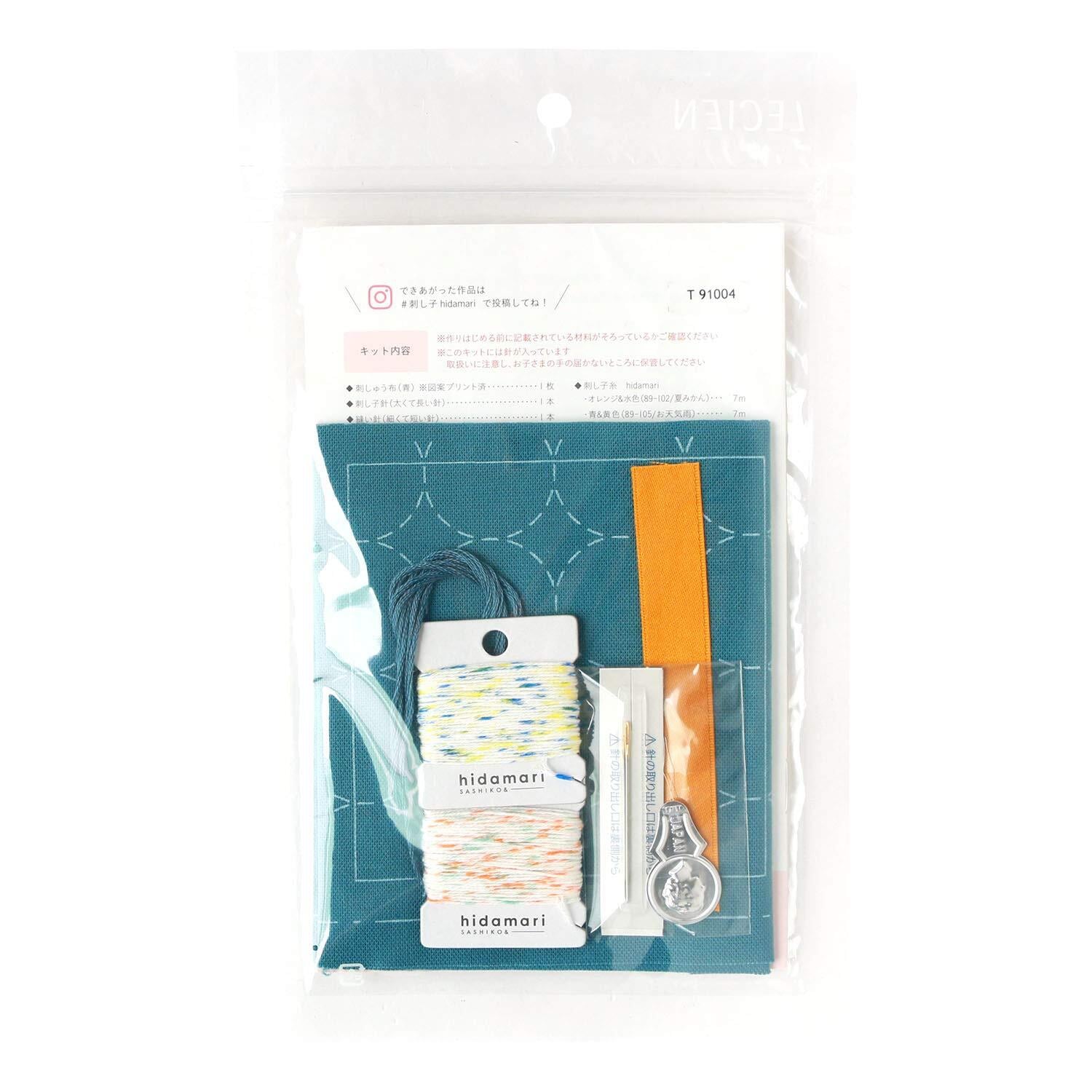 セット内容/刺しゅう布(図案プリント済)、刺し子針、縫い針、糸通し、刺し子糸、仕立て用糸、コットンテープ、作り方説明書