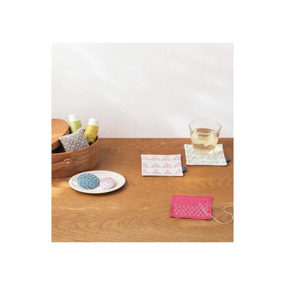 LECIEN (ルシアン) hidamari 刺しゅうキット 刺し子のペアコースター 約10×10cm CSK98952 グリーン