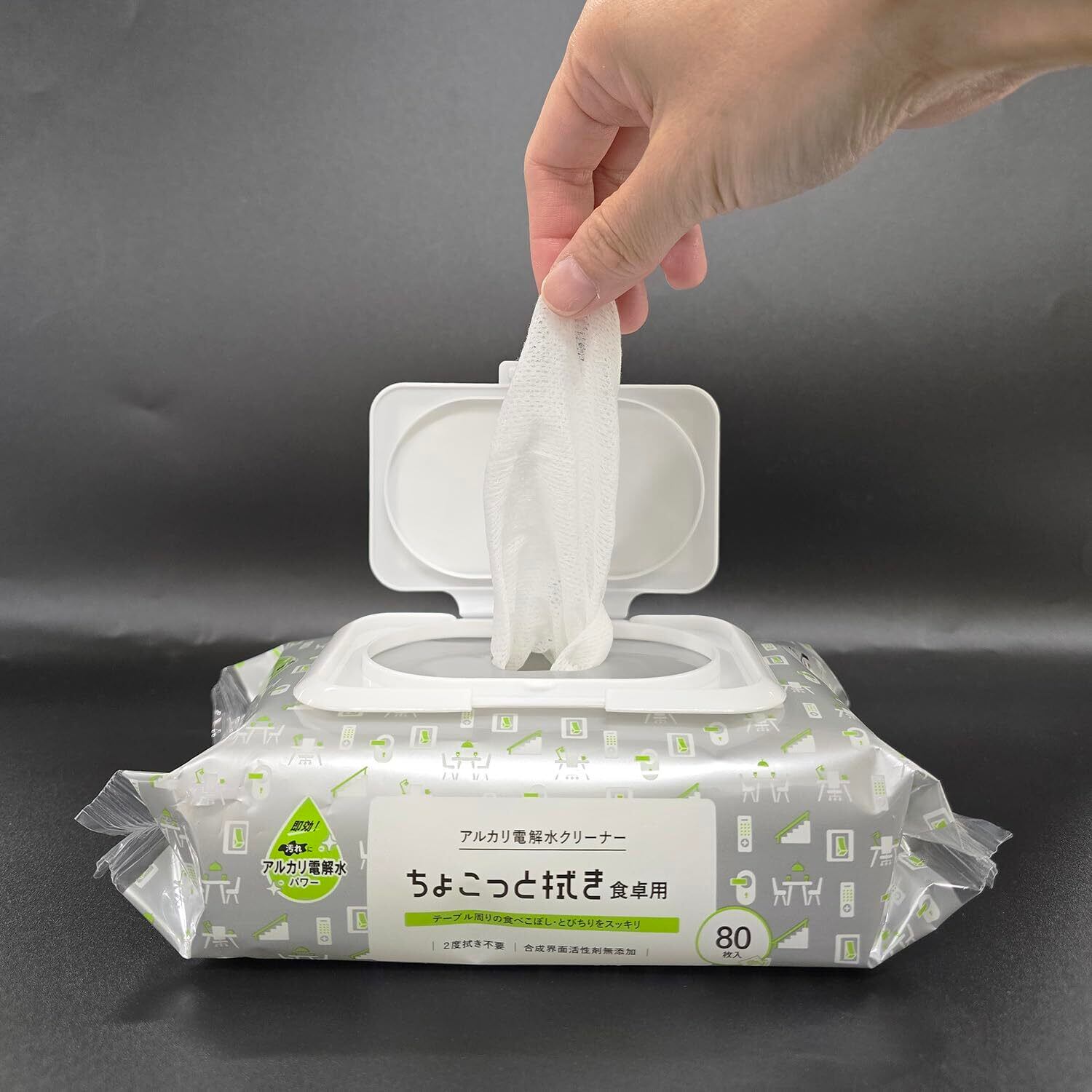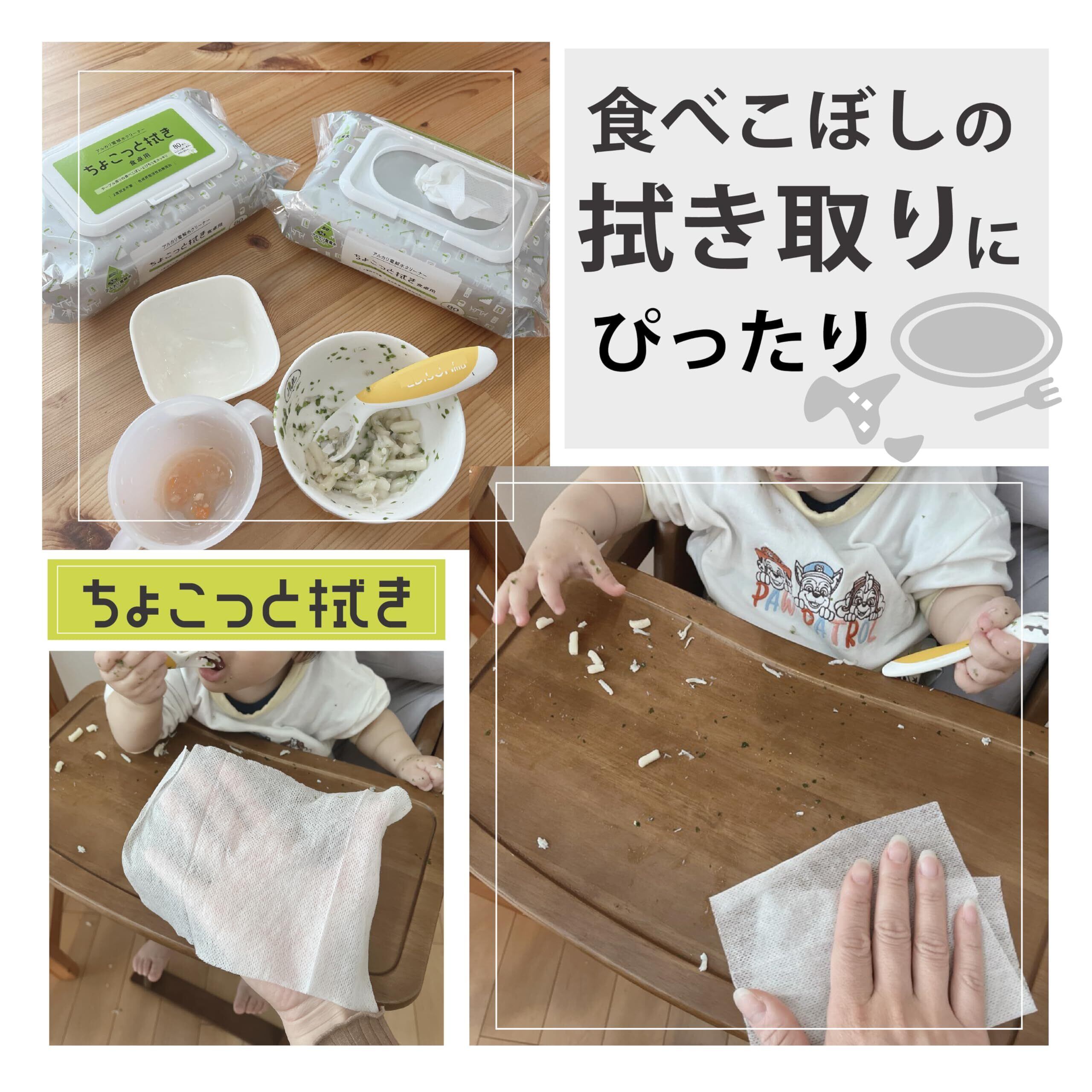 食卓テーブルの食べこぼしやとびちり汚れ、スイッチ・リモコン・ドアノブの埃や皮脂汚れのお掃除に。テーブルふきんのかわりに。洗剤を使いたくない場所の掃除に。