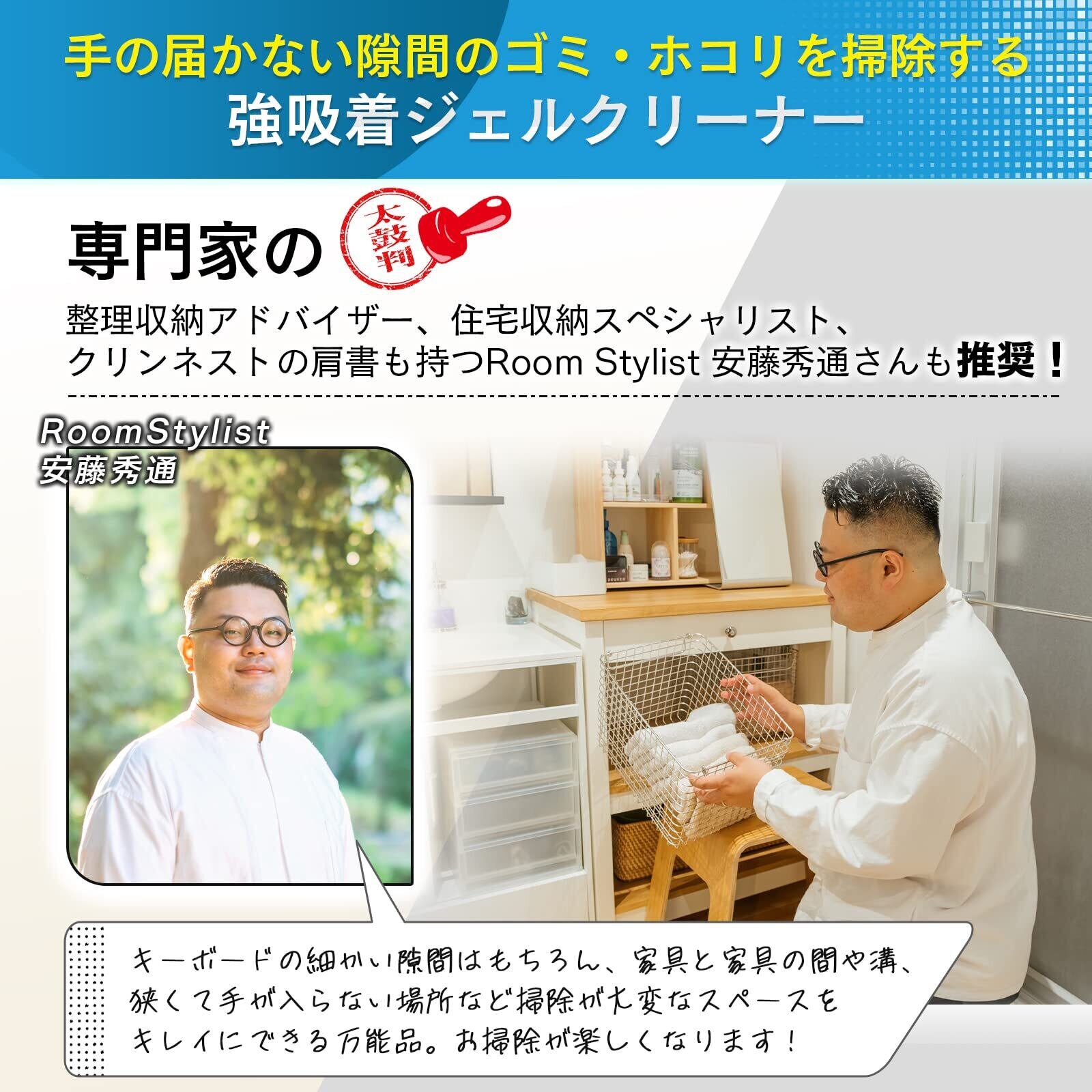 【ご使用上の注意】ご使用前に乾燥した手で1~2分ほどよく揉んで伸ばして、全体をなじませてください。湿疹、かぶれなど手に異常があるときはご使用をお控えください。奥に押し込みすぎたり、こすりつけたり、素早く引きはがすと、すき間に本品が残ることがあります。衣類、革製品等には付着して取れなくなる場合があります。濡れている表面にはご使用になれません。油汚れには対応していません。