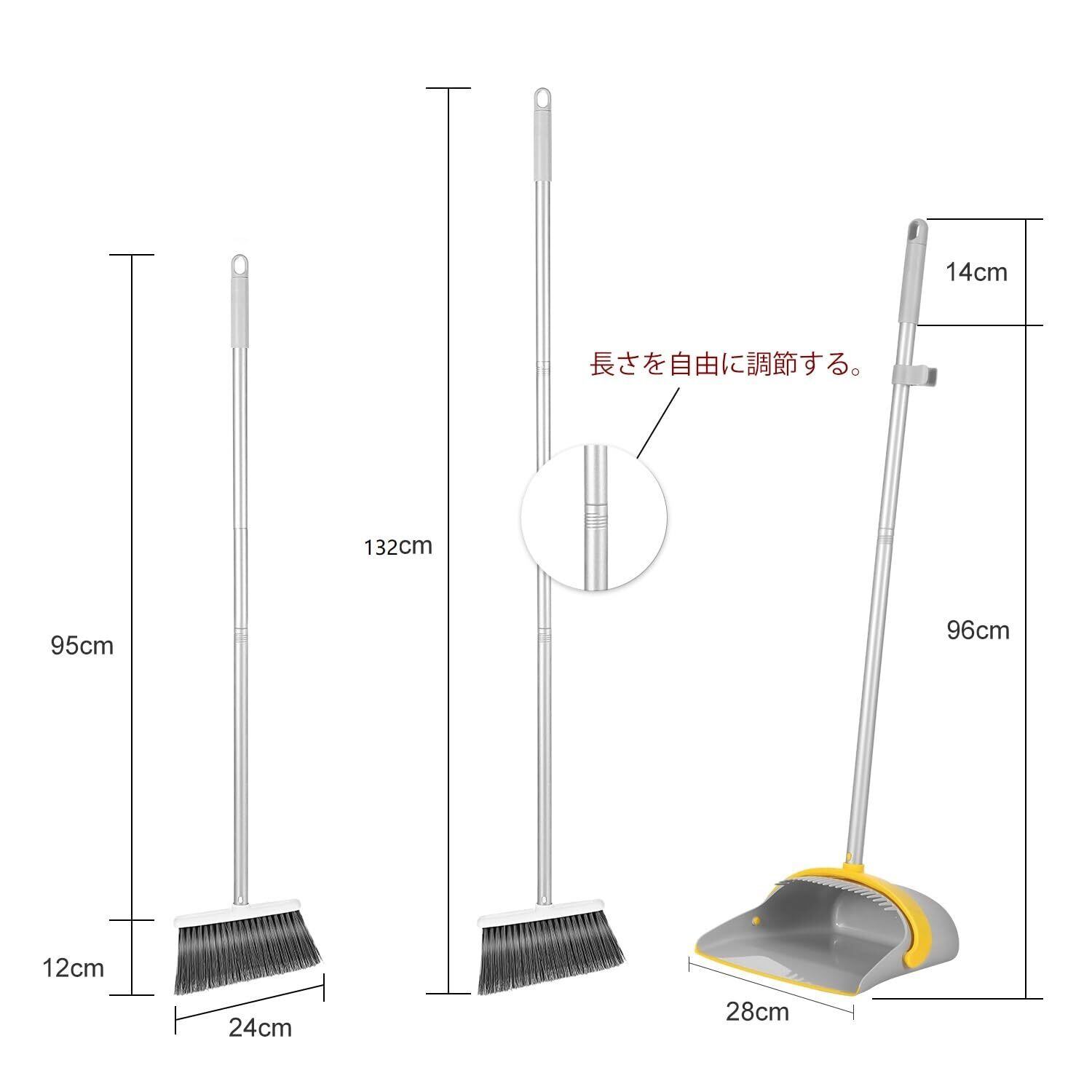 【自由調節 延長ポール付き】人体デザインに適合、ほうきの高さは95〜127 cm、曲げの問題に別れを告げる、一本の延長ポールが付いていますので、ほうきにもちりとりにも使用でき、場所によってご自由に組み合わせます。例えば、天井を掃除する時は延長ポールを使用して長さは127cmになります。【適用場所】おしゃれなデザインで幅広く使用され 石床も木床も、部屋、屋外、玄関、ベランダ、美容室、コンビニ、会社、庭、ガレージ、ペットショップ 学校どが掃除できます。