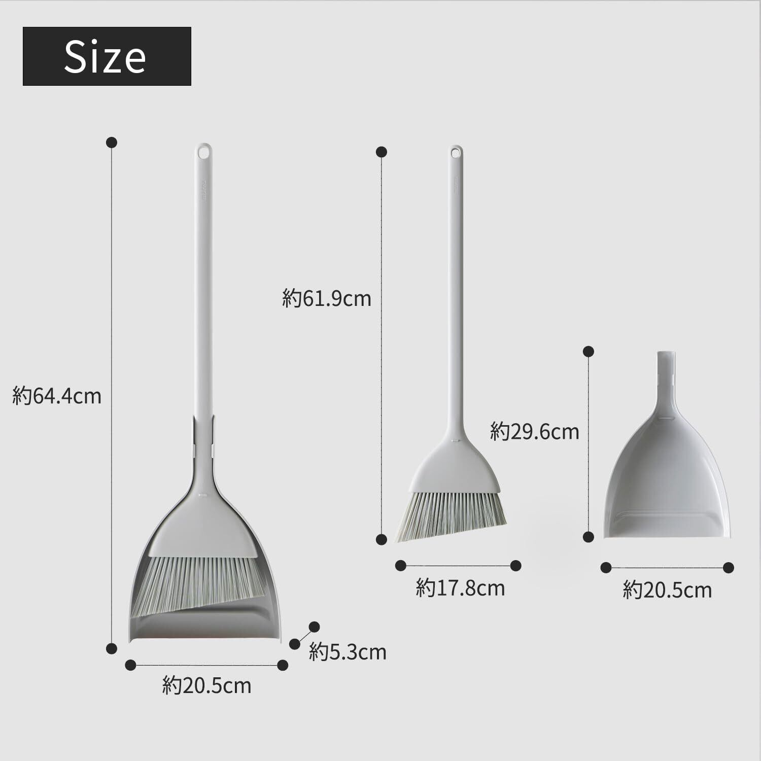 【材質】本体・ちりとり:ポリプロピレン ブラシ:PET【サイズ】約205×644×53mm【生産国】中国